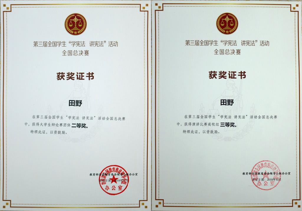 本专业设有模拟法庭、物证技术实验室等实践教学场所,定期举行模拟法庭大赛、辩论赛、演讲比赛,锻炼学生的逻辑思维与口才表达能力,本专业学生于2016、2018年夺得了青岛科技大学第十八届大学生辩论赛总冠军,2016年度获得全国“学宪法讲宪法”比赛山东赛区一等奖,2018年度获得全国“学宪法讲宪法”比赛山东赛区特等奖和全国三等奖。