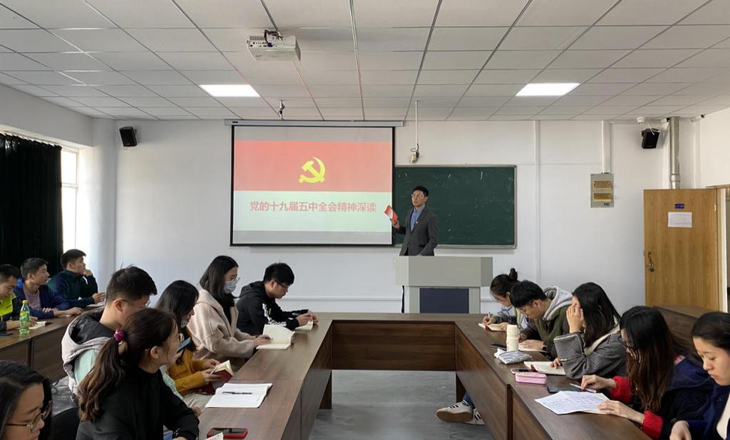 为深入学习贯彻党的十九届五中全会精神,11月13日下午法学院学生党支部组织全体学生党员观看《学习贯彻党的十九届五中全会精神中央宣讲团报告会》并深入学习了党的十九届五中全会精神。会议由学生党支部书记付继航同志主持。