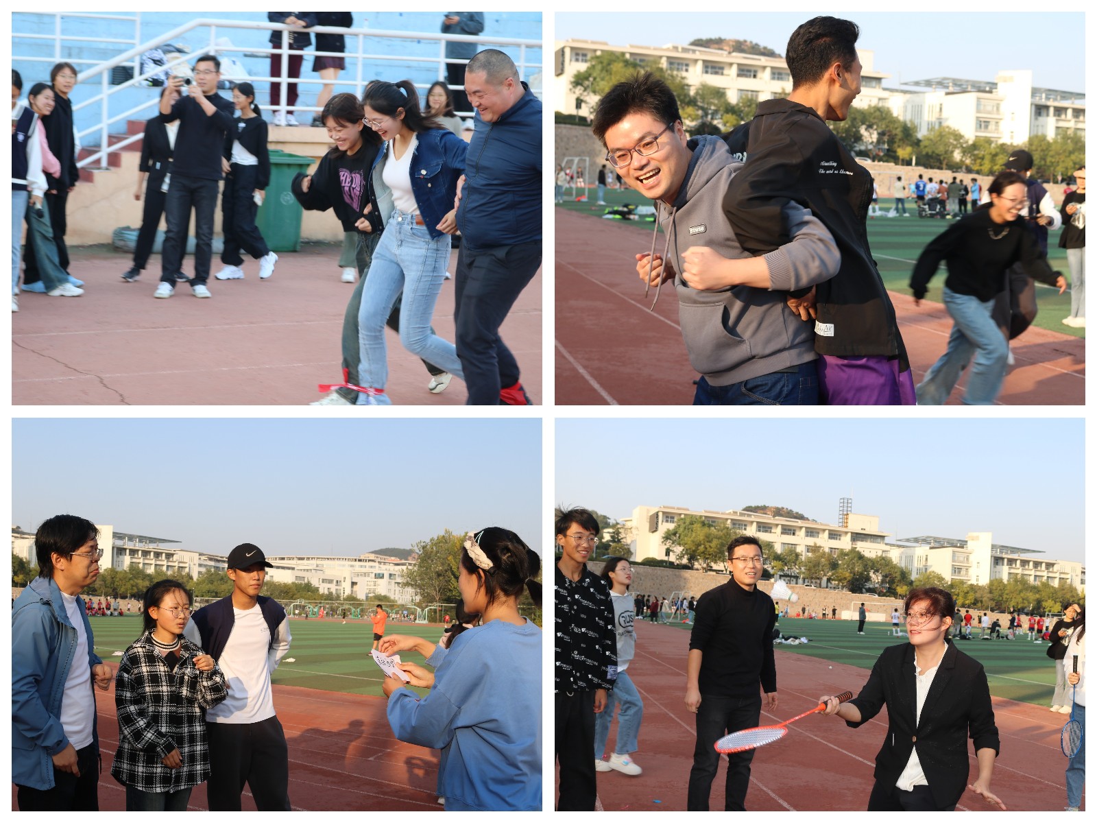 10月24日,法学院在南苑操场举办了师生趣味运动会,老师和同学们分组共同完成多人多足、趣味接力、你画我猜和默契大比拼四个项目。比赛过程中,老师们与同学们齐心协力,团结协作,一同享受运动带来的欢乐时光。赛后,老师们与同学们一起交流参赛感受,增进师生交流。