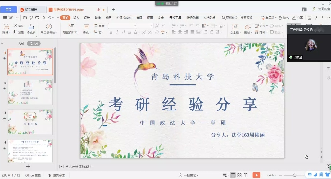 交流会分为经验分享和自由交流两个环节。在经验分享环节,被保送至华东政法大学的于畅同学和李丹丹同学、考取中国政法大学的周筱涵同学、考取华东政法大学的王雨晨同学、考取西南政法大学的于萌萌同学、考取暨南大学的王新月同学、考取烟台大学的向文轩和闫丽丽同学、考取大连海事大学的杨晓玉同学、考取中国海洋大学王玉蓉同学、考取青岛科技大的李奕萱和李凯同学,围绕着公共课、法律硕士和法学硕士的初始和面试环节分享经验。在自由交流环节,同学们围绕着英语备考、时政热点、不同高校法学硕士的题型与知识重点等方面进行交流。