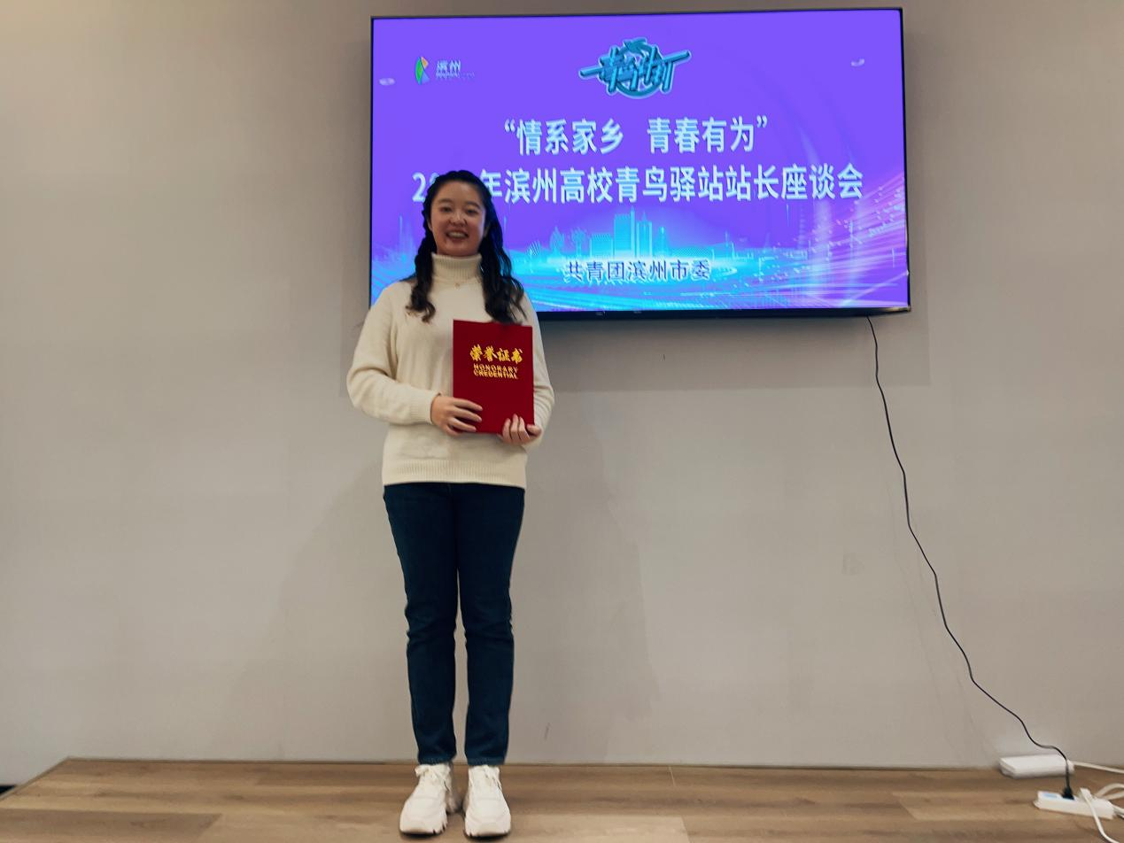实习期间,正值滨州市高校青鸟驿站站长座谈会召开。作为学生代表,我深刻结合工作实际,认真做出汇报。我将继续充分发挥自身优势,积极畅通青鸟学子与家乡交流的渠道,密切青鸟驿站与高校学生的关系,搭建优秀青年返滨来滨发展的桥梁,为推动滨州的高质量发展注入更加强劲的动力。