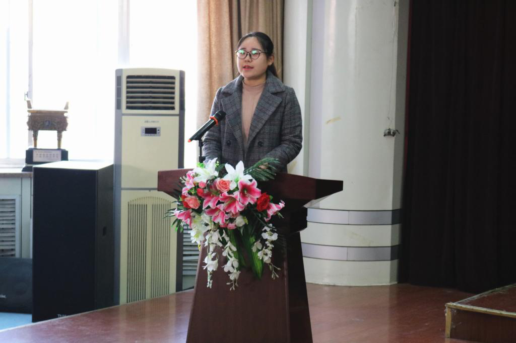 在校学生代表杨惠杰发言,她在发言中表示在今后的学习和工作中将向优秀校友看齐,提倡每一位同学要常怀感恩之心,不忘母校哺育之恩,常回家看看。