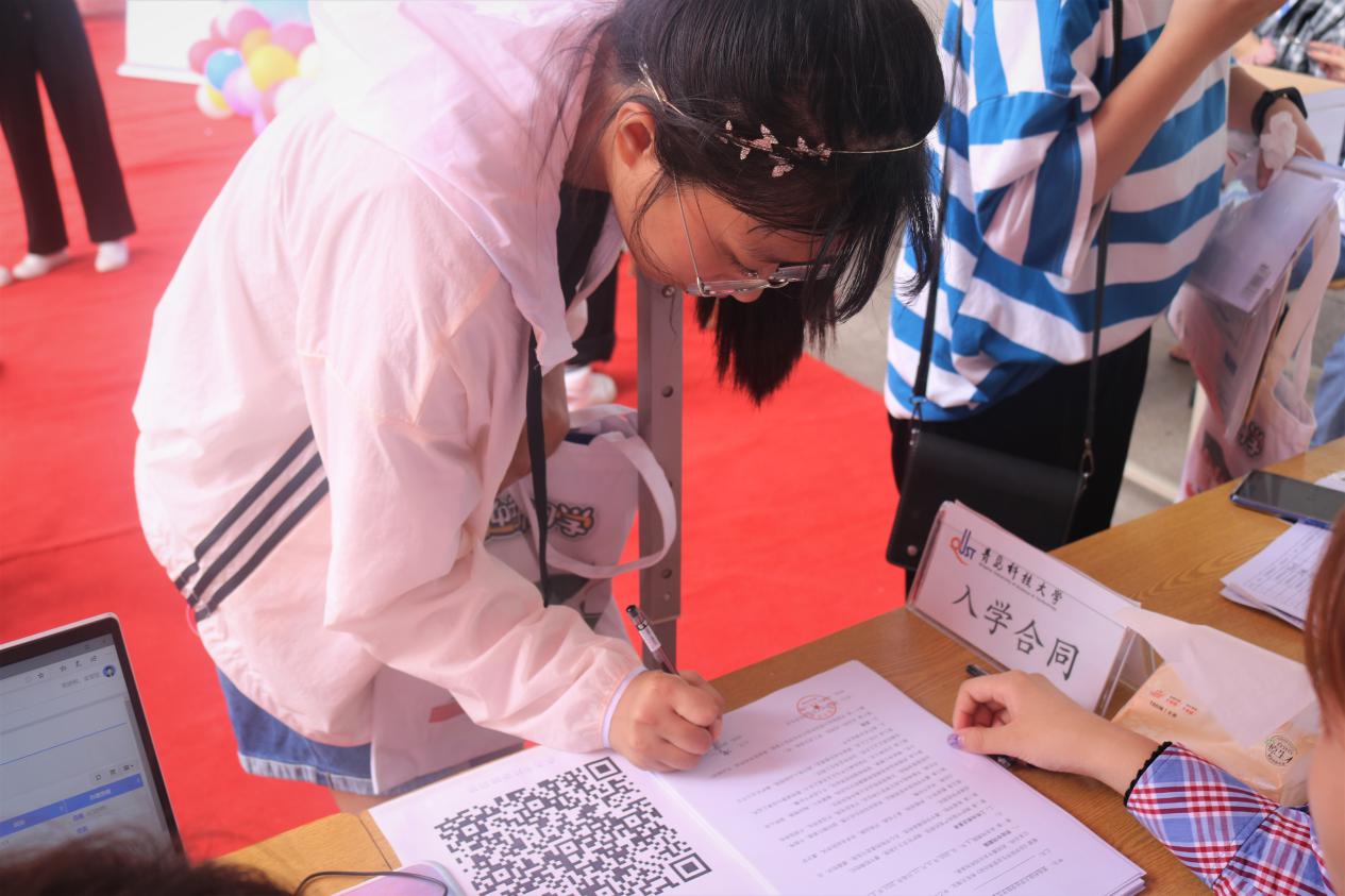 “甲方:法学院学生会;乙方:新同学。为使乙方能够在大学期间成为一个有理想、有本领、有担当的优秀人才,双方在平等自愿的基础上,同意签订本合同。”学院学生会为2020级新生量身订制了一份别出心裁的“新生入学合同”,让新同学对自己专业有一个初步了解的同时,也助力学生提升规矩规则意识,培养法学院学生契约精神,增强同学们的职业认同感。报到点设立“大学堂开,法律门启”的合影墙和考研风云榜,以司法考试、考研考公、社工师的榜样事例,让新生提前感受进入法律之门的使命和担当,巩固专业认同教育。