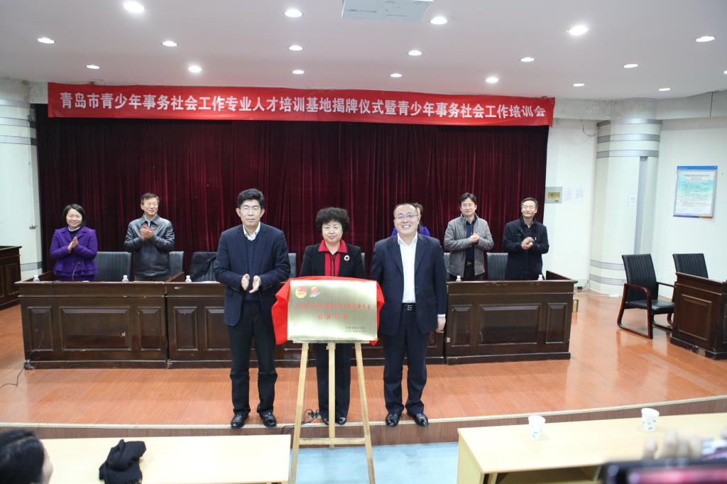 12月1日下午,由青岛科技大学法学院与团市委共建的青岛市青少年事务社会工作专业人才培训基地揭牌仪式在法学院模拟法庭举行。青岛科技大学党委副书记王瑞芳、团市委副书记张海军和市北区副区长高波共同为培训基地揭牌,团市委权益部部长刘文华和法学院书记兼院长张鸣代表双方签署合作协议,青岛科技大学团委书记王峰业、法学院院长助理赵玉增、社会工作专业教师和学生代表、部分青年志愿者代表、市北区青少年事务社会工作人员共计200余人参加揭牌仪式。