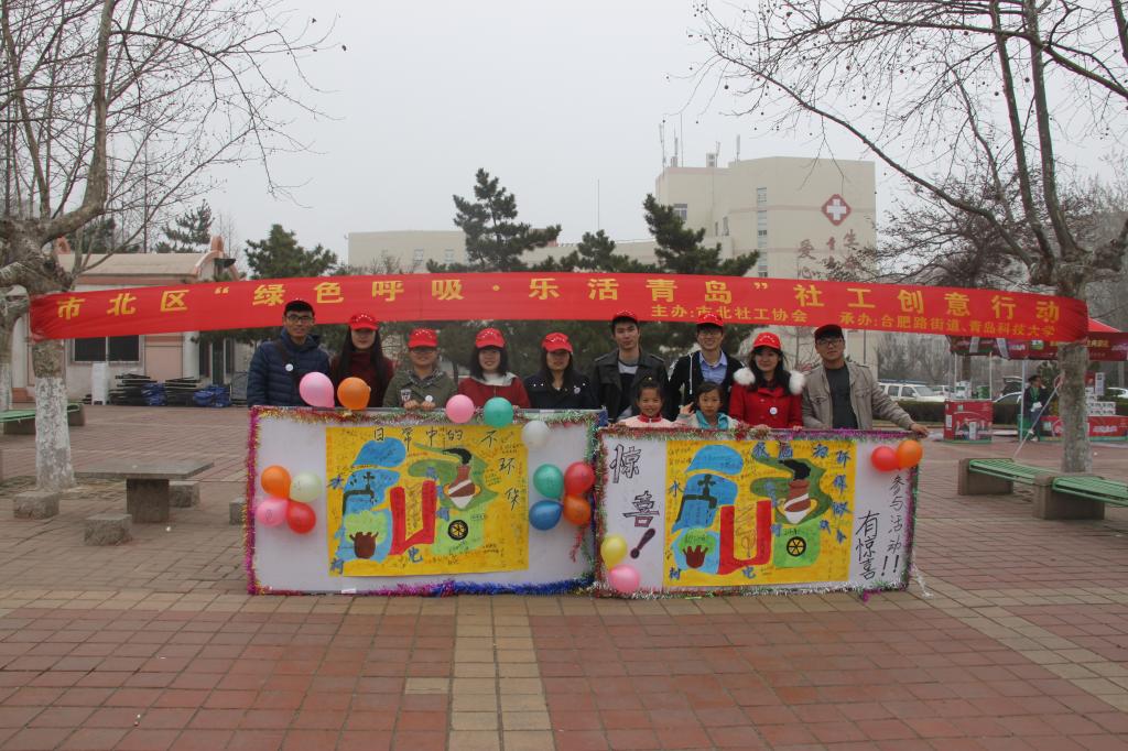 在第九届“国际社工节”来临之际,由青岛市北区社工协会主办的2015年市北区首届社工节“社工创意行动”也相应展开。在此期间,市北区各高校社工及社区社工纷纷踊跃提交创意方案,根据网友投票挑选出前十的“社工创意行动”方案实施开展。其中,以“绿色呼吸,乐活青岛”为主题的青岛科技大学“绿色行动家”团队以较高票数获选,团队活动于28号在市北区合肥路街道社区如期开展。这一团队由我院社工系学生组成。