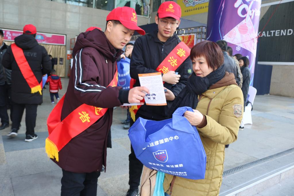 12月4日“宪法宣传日”,我院普法宣传志愿者在崂山丽达广场、南苑餐厅东门开展普法宣传活动,通过普法材料的发放,传播宪法知识。