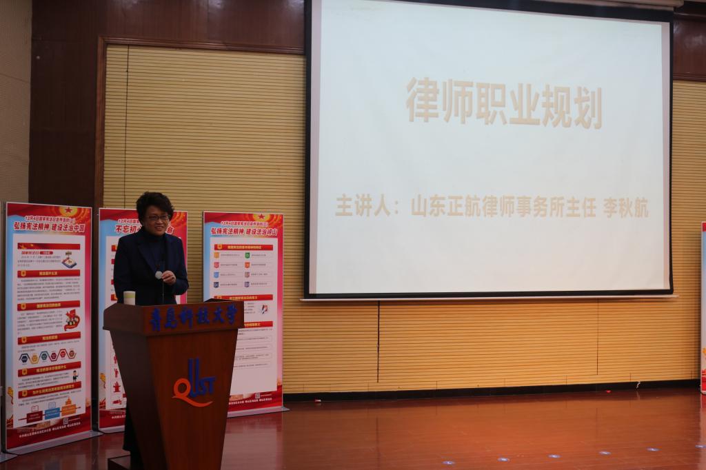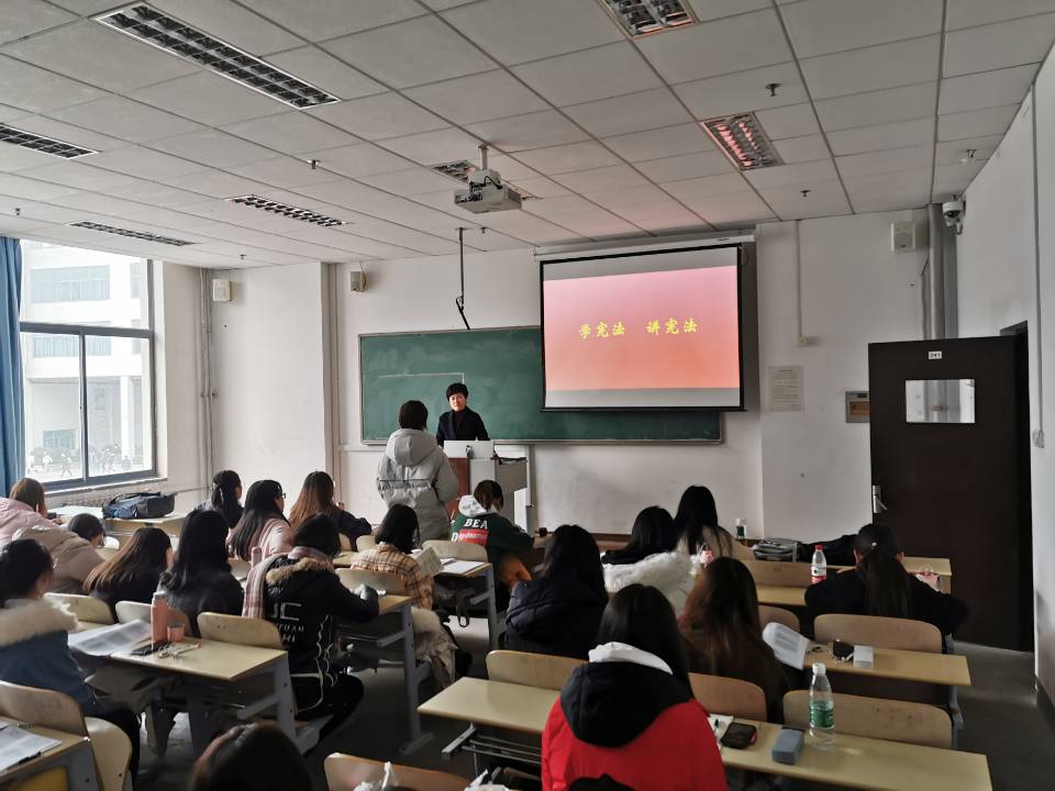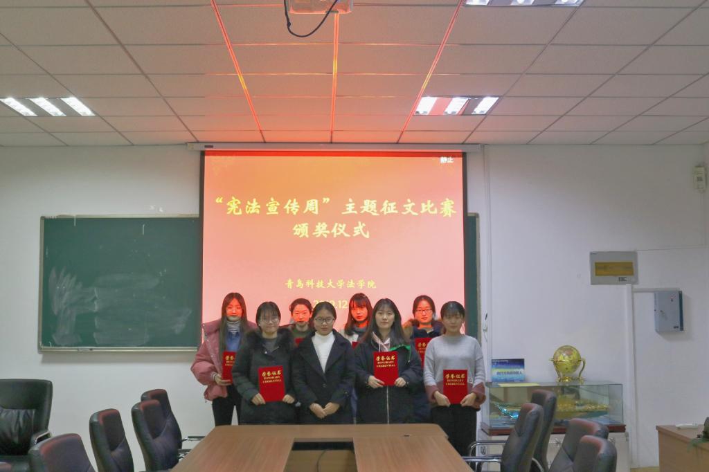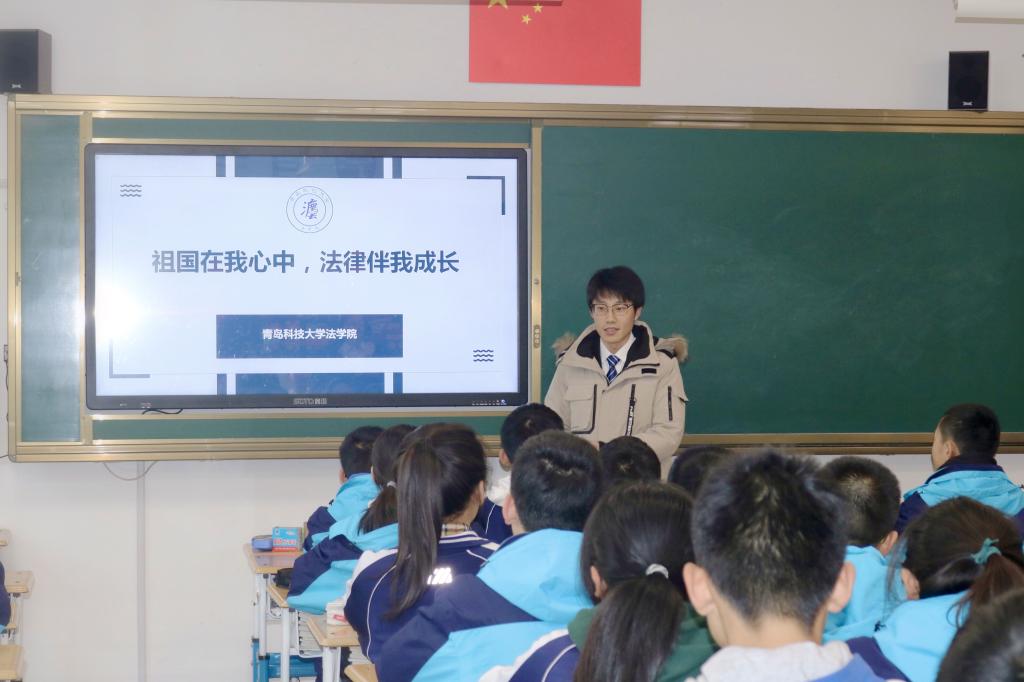 12月1日,邀请山东正航律师事务所主任李秋航律师走进校园,为我校师生带来宪法宣传专题讲座。12月5日,组成“宪法宣讲团”走进崂山育才等中小学,积极开展校园宪法宣讲。