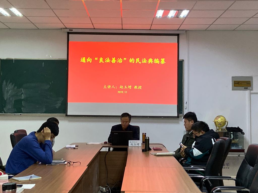 11月28日晚,法学院研究生学术论坛在学院会议室举行,本期论坛邀请的主讲人是法学院赵玉增教授。论坛上,赵玉增教授作了题为《通向“良法善治”的民法典编纂》的学术报告,学院60余名研究生参加了此次论坛。