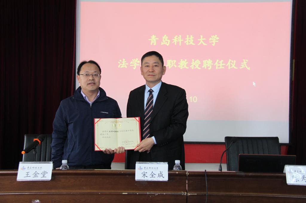 5月10日,法学院兼职教授聘任仪式在弘毅楼A201模拟法庭举行,山东大学移民研究所所长、博士生导师宋全成教授受聘我院兼职教授,法学院院长王金堂为宋全成教授颁发聘书。仪式由院长助理陈为智主持。