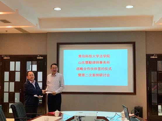 2019年4月30日下午,我院与山东慧勤律师事务所签署战略合作协议签署仪式在青岛举行。王金堂院长、李鑫副院长、綦磊等5位老师与山东慧勤律师事务所冯恩杰主任、该所部分合伙人和骨干律师共同参加了签约仪式。