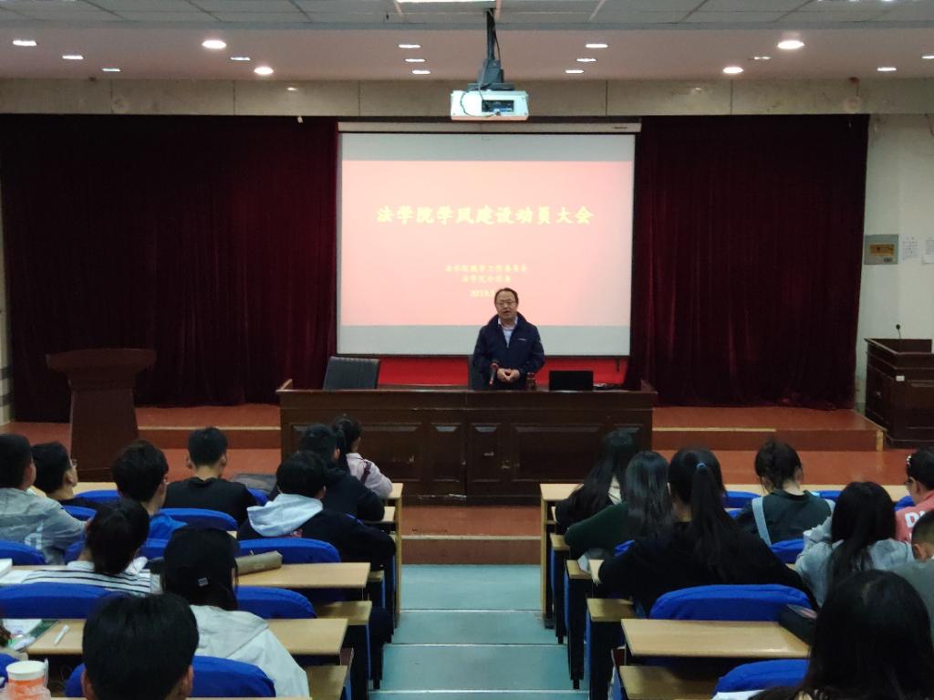 近日,为建设良好学风、营造积极向上的学习氛围,法学院向全体学生发出了《优良学风,从我做起》倡议书,号召同学们行动起来,为加强学风建设而共同努力。5月5日,法学院教学工作委员会、分团委共同举办了学风建设动员大会,2018级全体学生参会,法学院院长王金堂教授出席并讲话。
