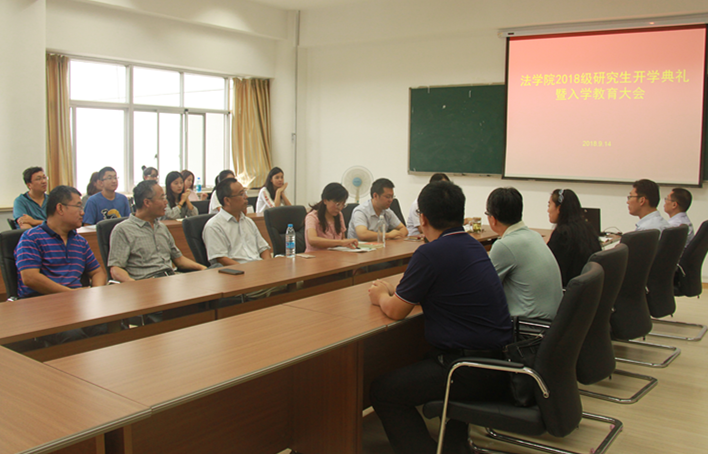 9月14日,法学院于学院会议室召开了2018级研究生开学典礼暨入学教育大会,学院党总支书记朱敬义、院长王金堂、副院长李鑫及部分导师代表出席了典礼。