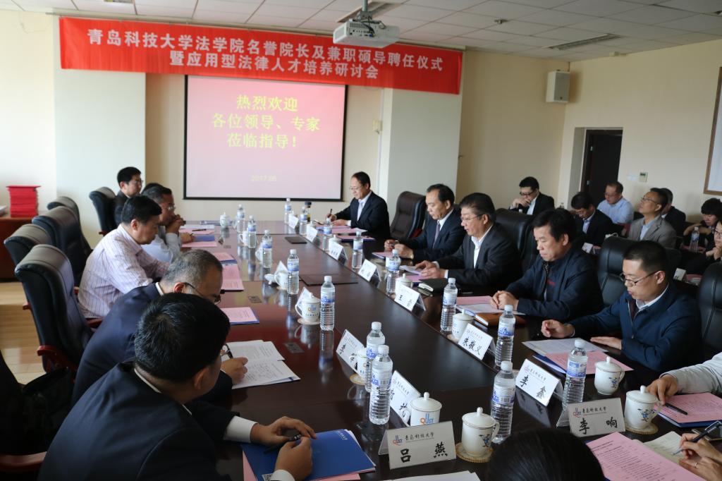 为助推“五有”高水平大学建设和“双一流”建设,加快人才培养模式改革,5月6日下午,法学院与人事处、教务处联合举办了应用型法律人才培养研讨会,探讨法律人才培养方案修订,同时聘任法学院名誉院长与兼职硕士研究生导师。校党委常委、纪委书记姚锋出席会议并讲话。人事处处长王雷,教务处处长王霞,法学院教师代表以及来自青岛市中级人民法院、青岛市仲裁委员会、青大泽汇律师事务所等13个单位的30余位专家参加会议。