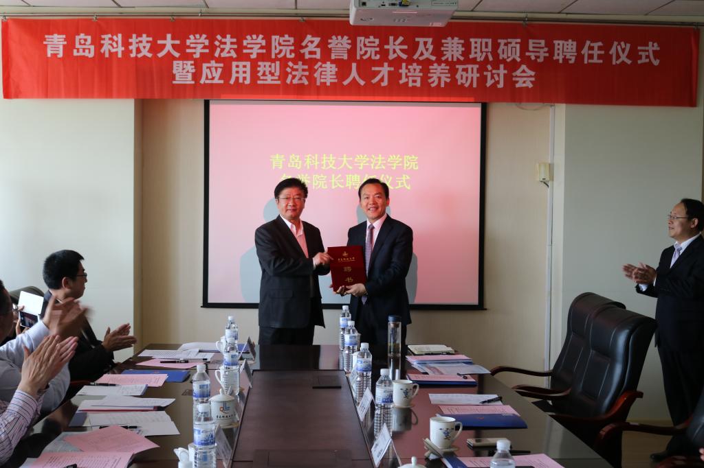 会上,姚锋为著名法学家徐祥民教授颁发了“青岛科技大学法学院名誉院长”聘书;为27名具有丰富实践经验的法官、仲裁员、律师颁发了“青岛科技大学法学院兼职硕士研究生导师”聘书。