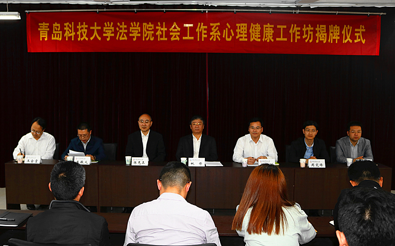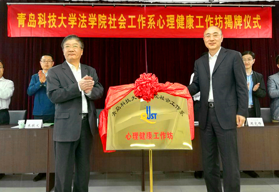 5月8日下午,青岛科技大学法学院社会工作系“心理健康工作坊”揭牌仪式在校心理健康教育与研究中心会议室举行,纪委书记姚锋、副校长陈克正出席揭牌仪式。