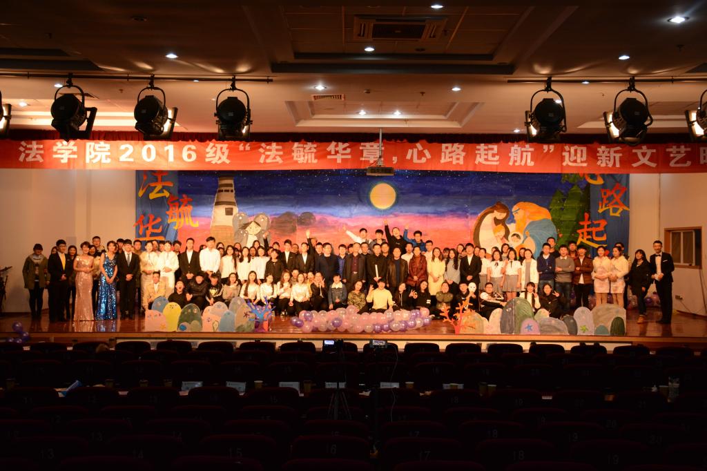 12月9日晚,法学院在崂山校区第二报告厅举办了迎接2016级新生文艺晚会。校学生处、校团委、法学院有关领导,法学院部分教师以及2016级全体新生出席晚会。