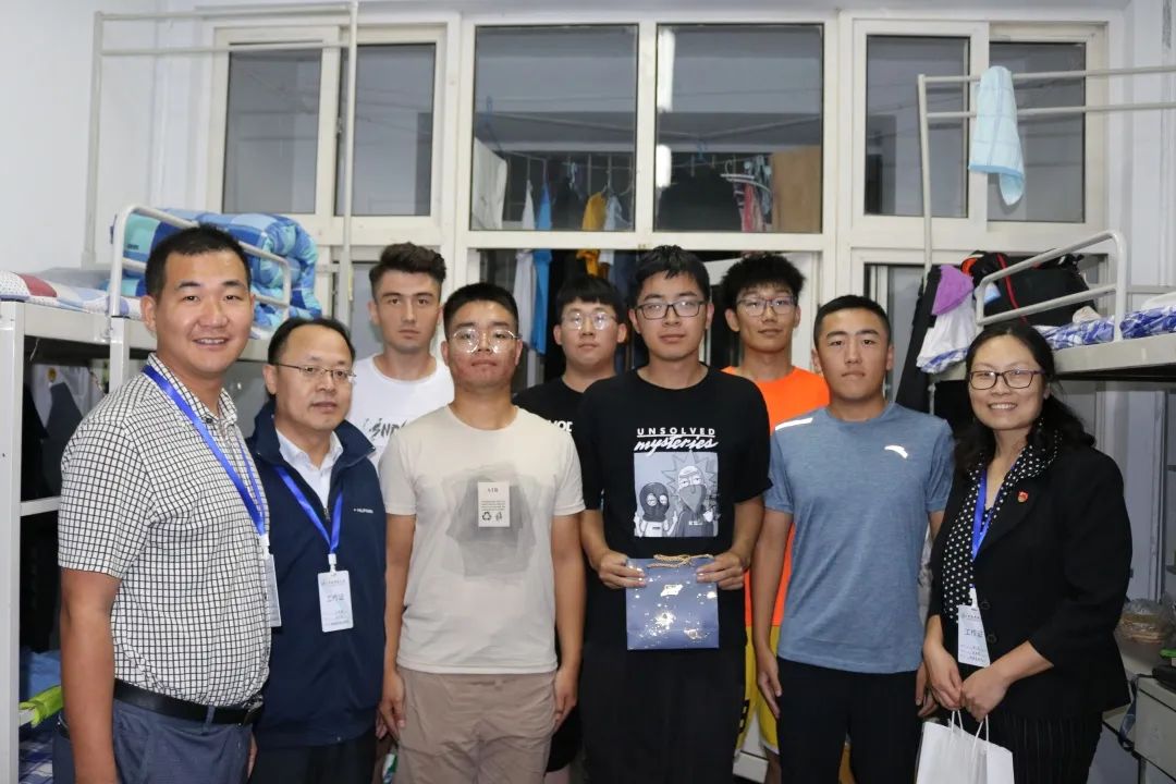 同学们热烈的欢迎学院领导们的到来,学院领导向新生们表达了节日的祝福,并且悉心的询问了他们的生活和学习情况,告诫假期外出游玩的同学们注意好自身的安全。最后学院领导、老师和同学们合影留念。