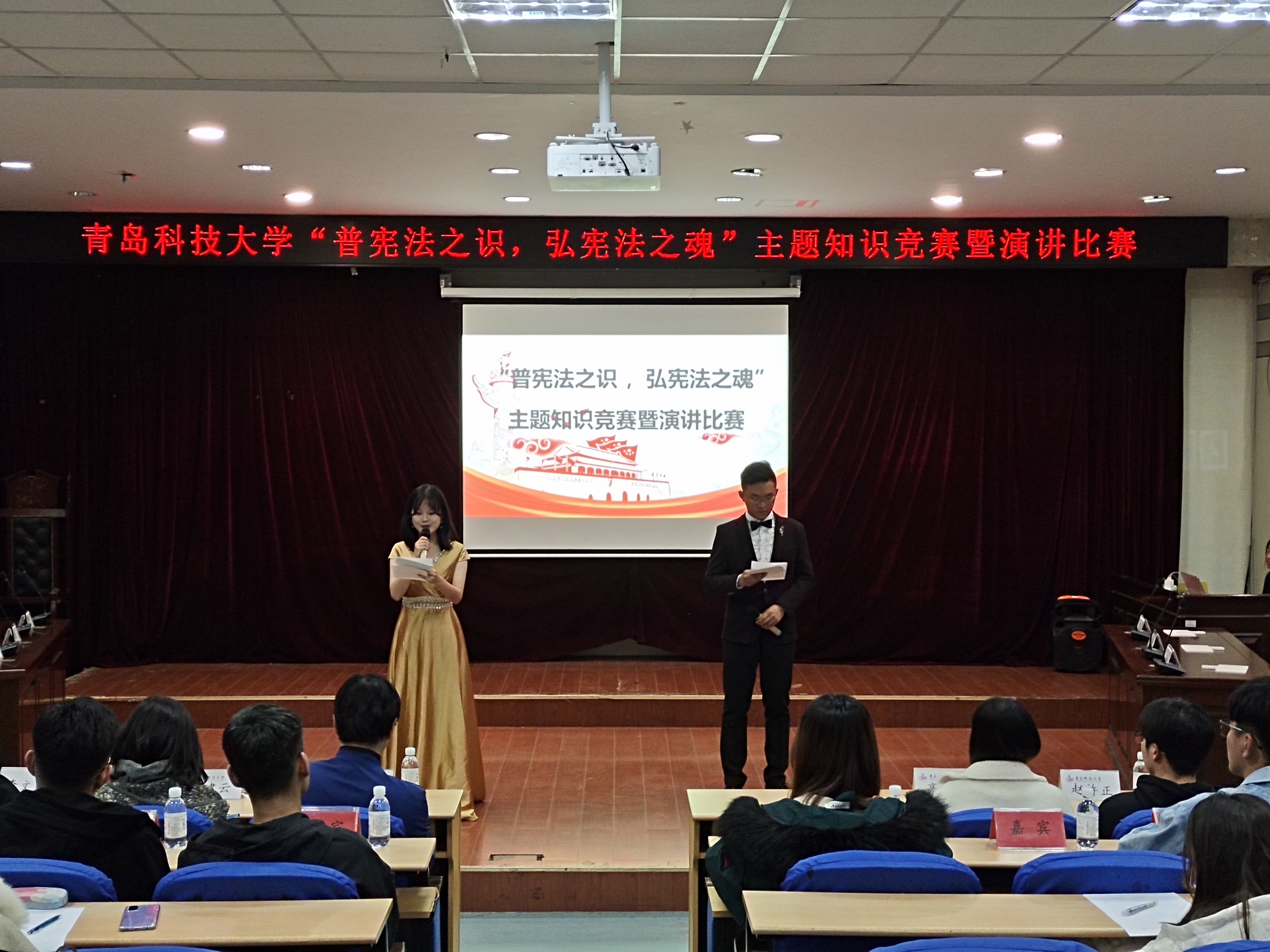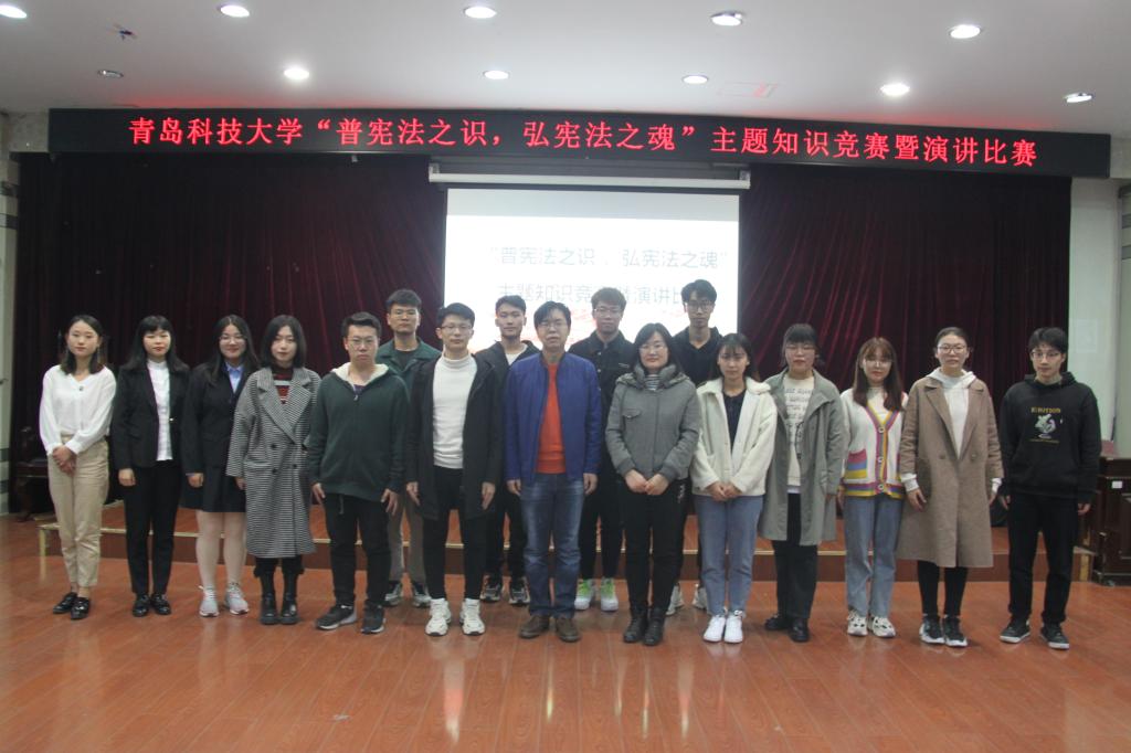 为深入学习领会习近平新时代中国特色社会主义思想,落实中央关于深入学习宣传和贯彻实施宪法的有关精神,广泛开展宪法宣传教育,选拔优秀选手代表学校参加第五届全省“学宪法讲宪法”主题演讲比赛,11月11日晚上,由校党委宣传部主办、法学院承办的首届“学宪法讲宪法”主题演讲比赛暨知识竞赛在崂山校区模拟法庭举行。法学院教师代表、校学生会、演讲口才协会相关负责人应邀担任评委。