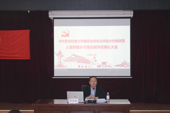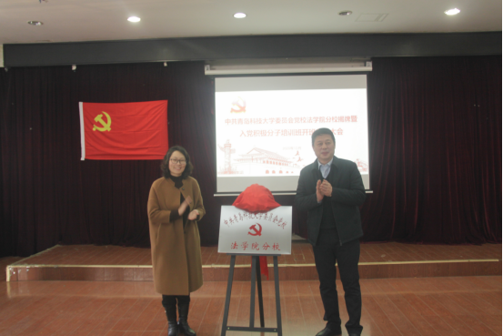 12月22日下午,中共青岛科技大学委员会党校法学院分校揭牌暨入党积极分子培训班开班典礼在弘毅楼A201举行。校党委副书记张鸿波出席仪式并为分党校揭牌。党委副处级组织员齐青、法学院专职组织员牟宗荣、学院党政领导、党员、入党积极分子100余人共同参加了揭牌仪式。仪式由法学院院长王金堂主持。