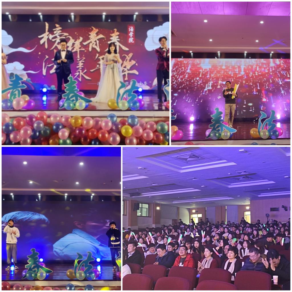 由法律专业的同学们带来的小品《你好,李焕英》,饱含了对母亲的思念,表达了子女对父母的动人情感;古典舞《烟雨行舟·青花瓷》将画意诗情与柔美的舞蹈相结合,以婀娜柔美的舞姿展现出中华传统文化的独特魅力;学生会主席团和部长团带来的舞蹈串烧《今晚就出道》展示了法学院学生骨干青春洋溢的活力与精神;法学院团委老师带来的歌曲串烧《岁月留声》讲述了法学院的发展和成长历史,彰显了法学院积极向上的优秀风貌。