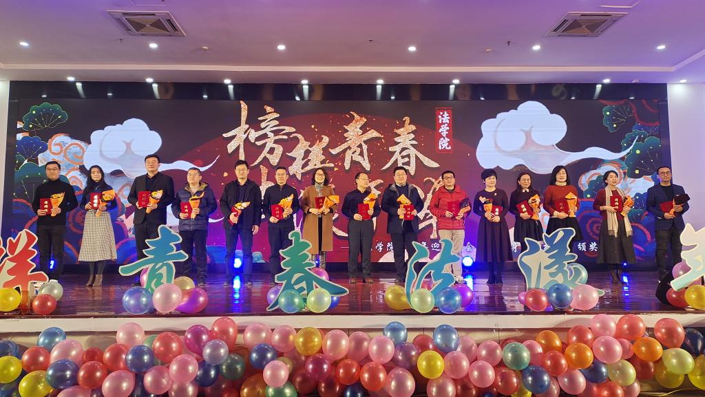 12月23日晚,法学院“榜样青春,法漾年华”迎新晚会暨“我身边的榜样”颁奖典礼于崂山校区第二报告厅如期举行。青岛市教育局处长刘俊杰、校团委副书记陈兵、党委校长办公室高教研究室副主任王鸿祥、传媒学院辅导员金莹莹、法学院院长王金堂、党总支书记李卉、副院长陈为智与学院教师、学生、兄弟学院学生会负责人300余人共同观看了晚会。