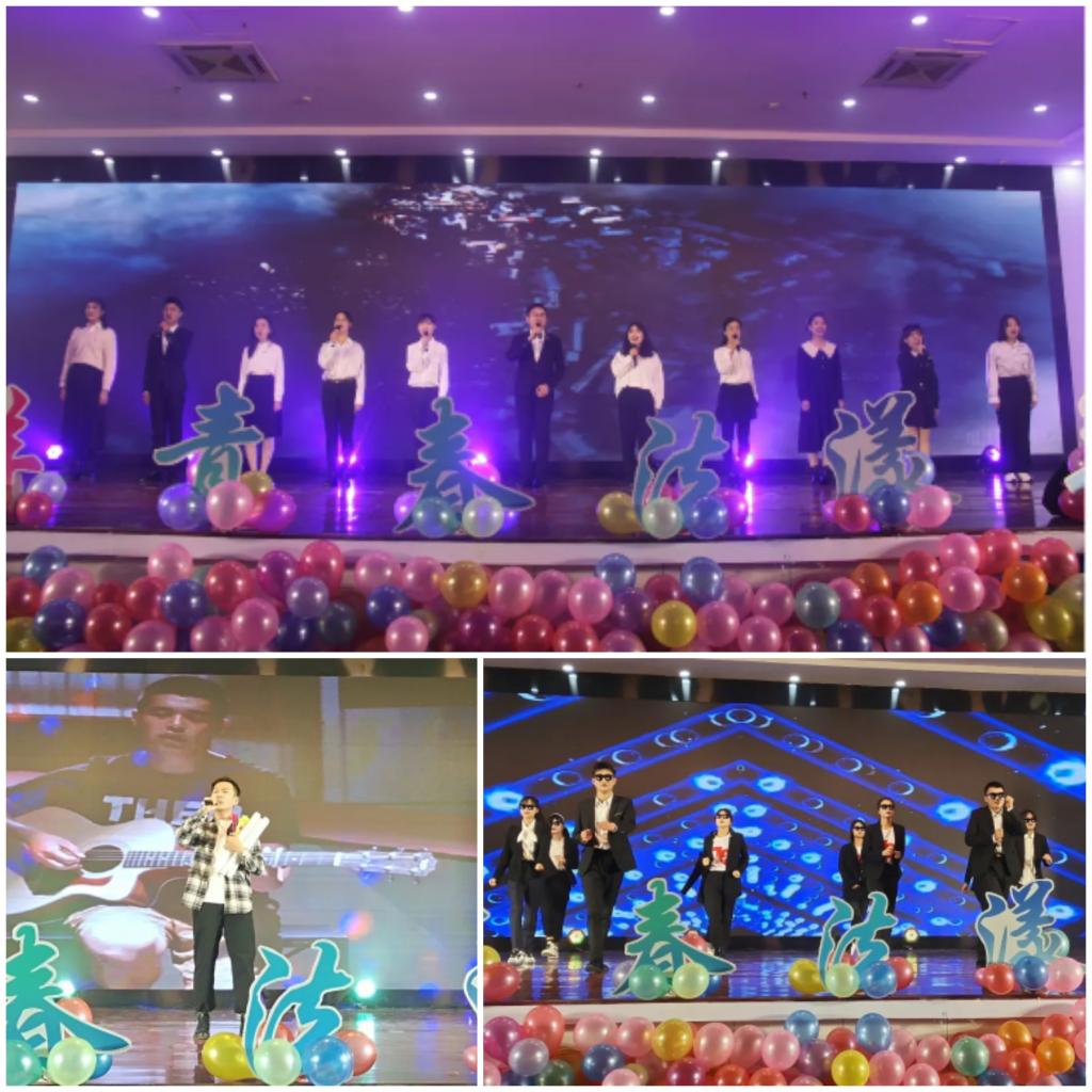 于晋老师的一首《华年》使得现场的气氛攀升到了顶峰,同学们情绪高涨,荧光棒和闪光灯不断挥舞,掌声喝彩不断。社会工作专业的同学们带来的情景剧《乌龙快递》以一种诙谐而不失感动的方式,将医护人员和社会工作者的工作展示出来,展现了中华民族强大的凝聚力和战斗力;歌曲串烧《一个像夏天一个像秋天》、《当年情》、《南山南》用跳跃的音符迸发青春与活力;搞笑舞蹈《just dance》朝气蓬勃,青春洋溢,让人忍俊不禁,拍手称赞。工会及妇委会老师为我们带来他们精心组织排练的诗歌朗诵《我的南方和北方》,他们的声音或悠扬、或高亢,使同学们深刻感受到我国传统文化的博大精深。
