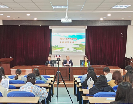 4月27日下午3:00,法学院在模拟法庭举行研究生培养质量及学风建设专题会议,法学院党总支书记李卉、院长王金堂、副院长李鑫及全体研究生参加了会议。会议由学院办公室白梅老师主持。