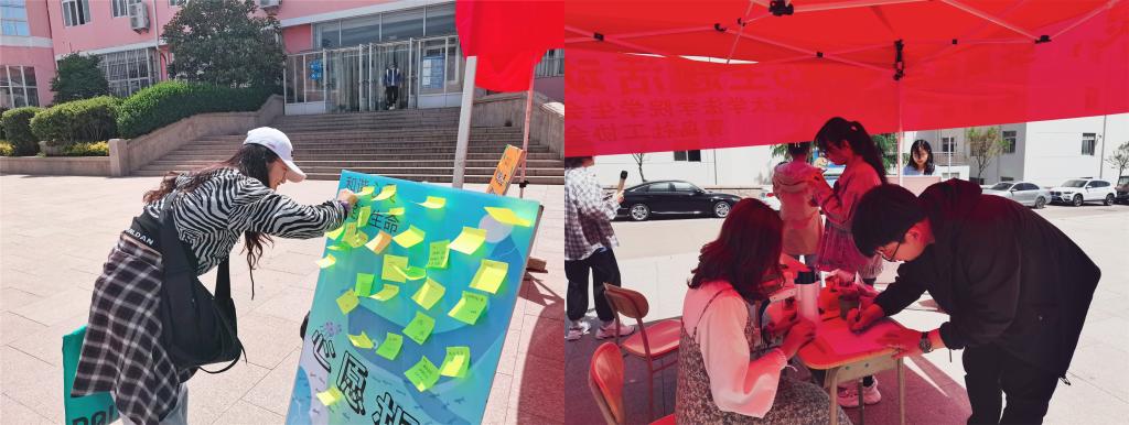 5月25日,学院学生会在餐厅东门开展了“和谐心灵,绽放生命”5·25主题教育活动。同学们积极参与,将自己对自己的期望、祝福等话语写在便利贴上并贴到展板上,每个参与活动的同学都能得到一颗花种,希望能够通过这种方式让同学们了解到生命的珍贵与成长的魅力,学会更好的接纳自己、爱护自己。
