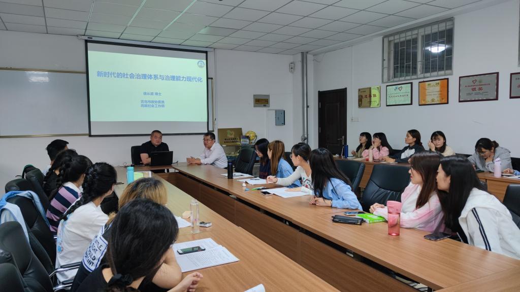 2021年6月3日晚七点,青岛科技大学法学院硕士生导师徐从德副教授的讲座“新时代的社会治理体系与治理能力现代化”在崂山校区弘毅楼C307室举行。本次讲座是2021年学院研究生学术论坛的第八期,论坛由王琪副教授主持,学院社会工作研究生参与。