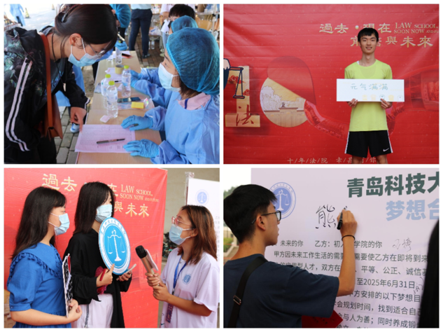 云天收夏色,木叶动秋声。9月2日至4日,法学院迎来了2021级302名新生报到。今年恰逢中国共产党成立100周年,朝气蓬勃的法学院也迎来了10周岁生日,在这特殊的日子里,2021级新同学的加入更加赋予了不一样的意义,为校园增添了亮丽的色彩。借此契机,法学院以“过去·现在 前瞻与未来”为主题开展了一系列迎新活动,学院学生工作办公室周密筹划,精心布置,使得新生一入校便体会“法院”特色,感受家的温暖。