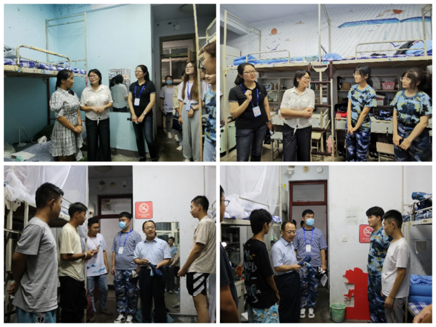 学院领导和学生工作办公室全体辅导员走访了新生宿舍,看望慰问新生,询问新生住宿情况,并与新生进行亲切交谈,使得新生再次体会到法学院大家庭的温暖。