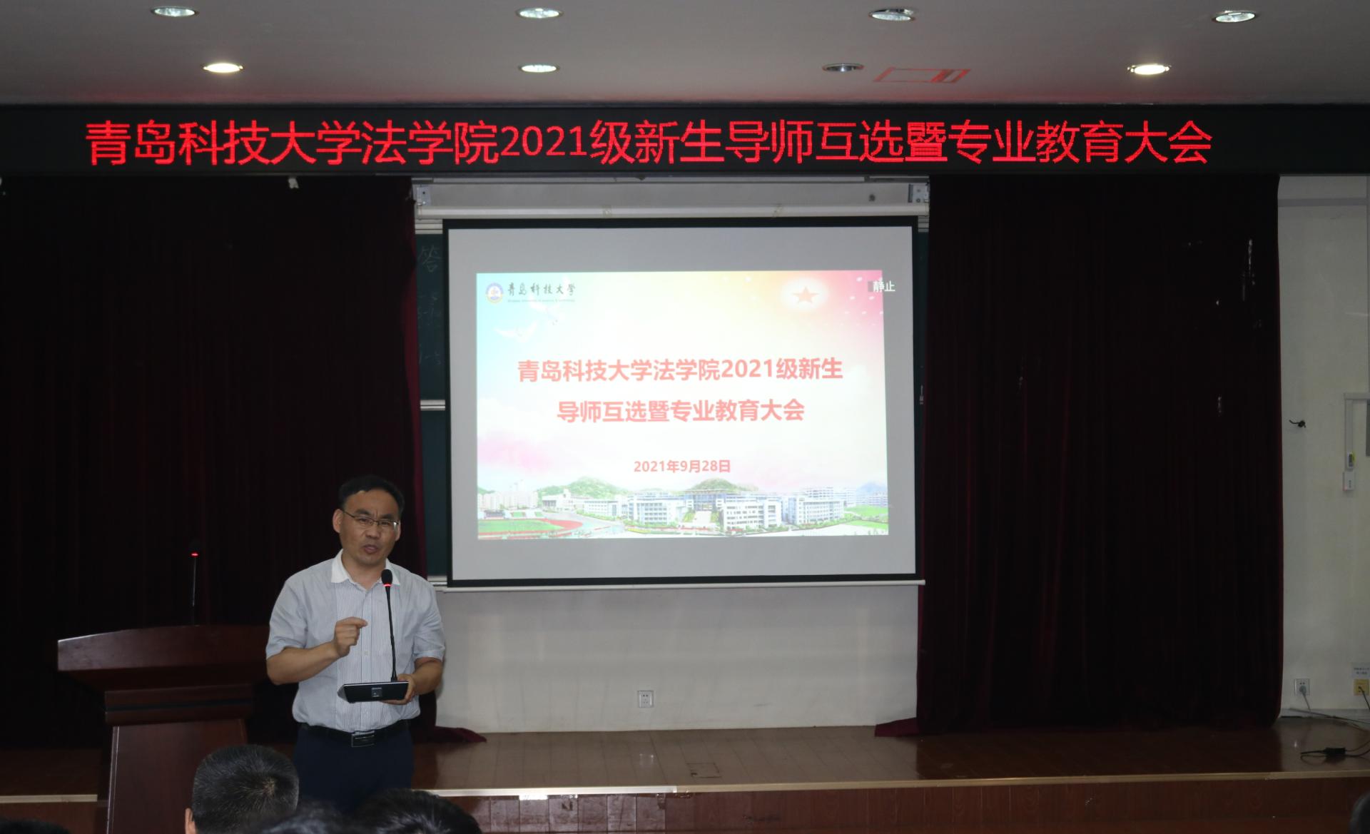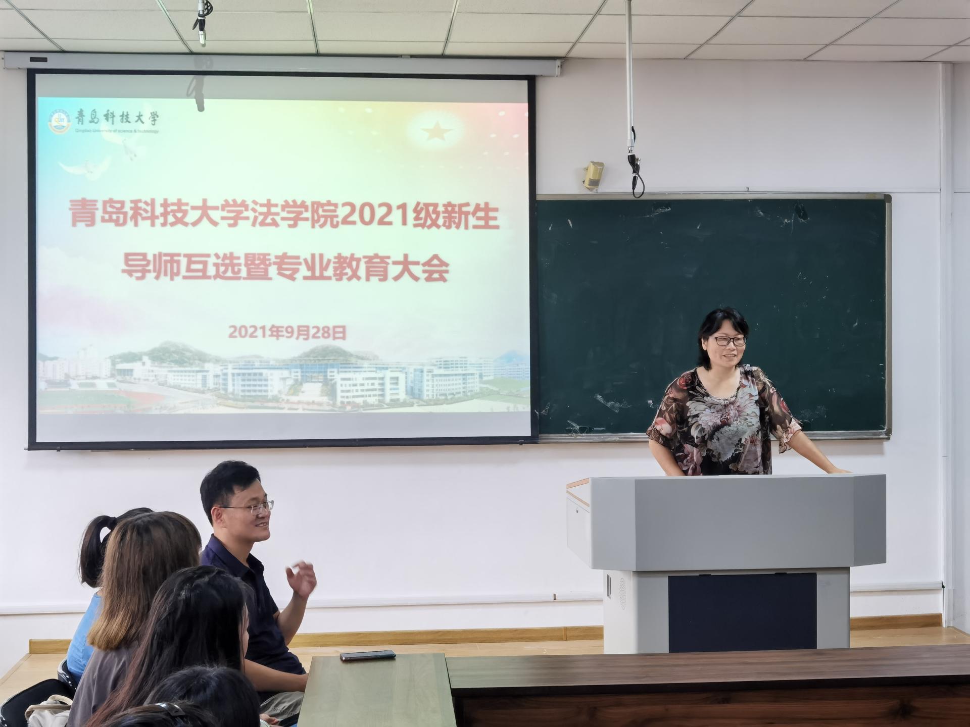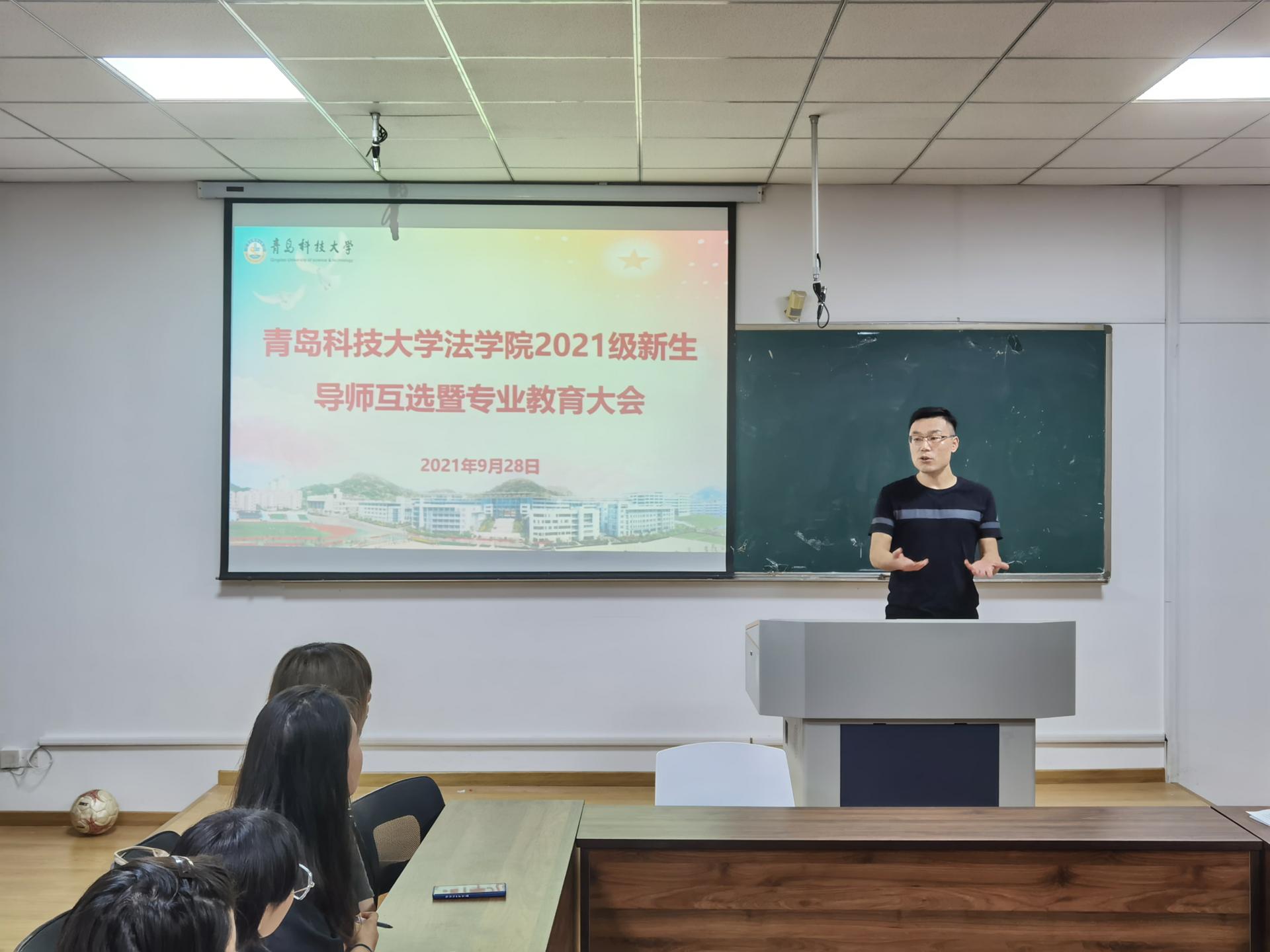 9月28日下午,青岛科技大学法学院2021级新生导师互选暨专业教育大会分专业在模拟法庭和党员活动室举行。党总支书记李卉,学院办公室、团委、专业系主任,本科新生导师出席会议。