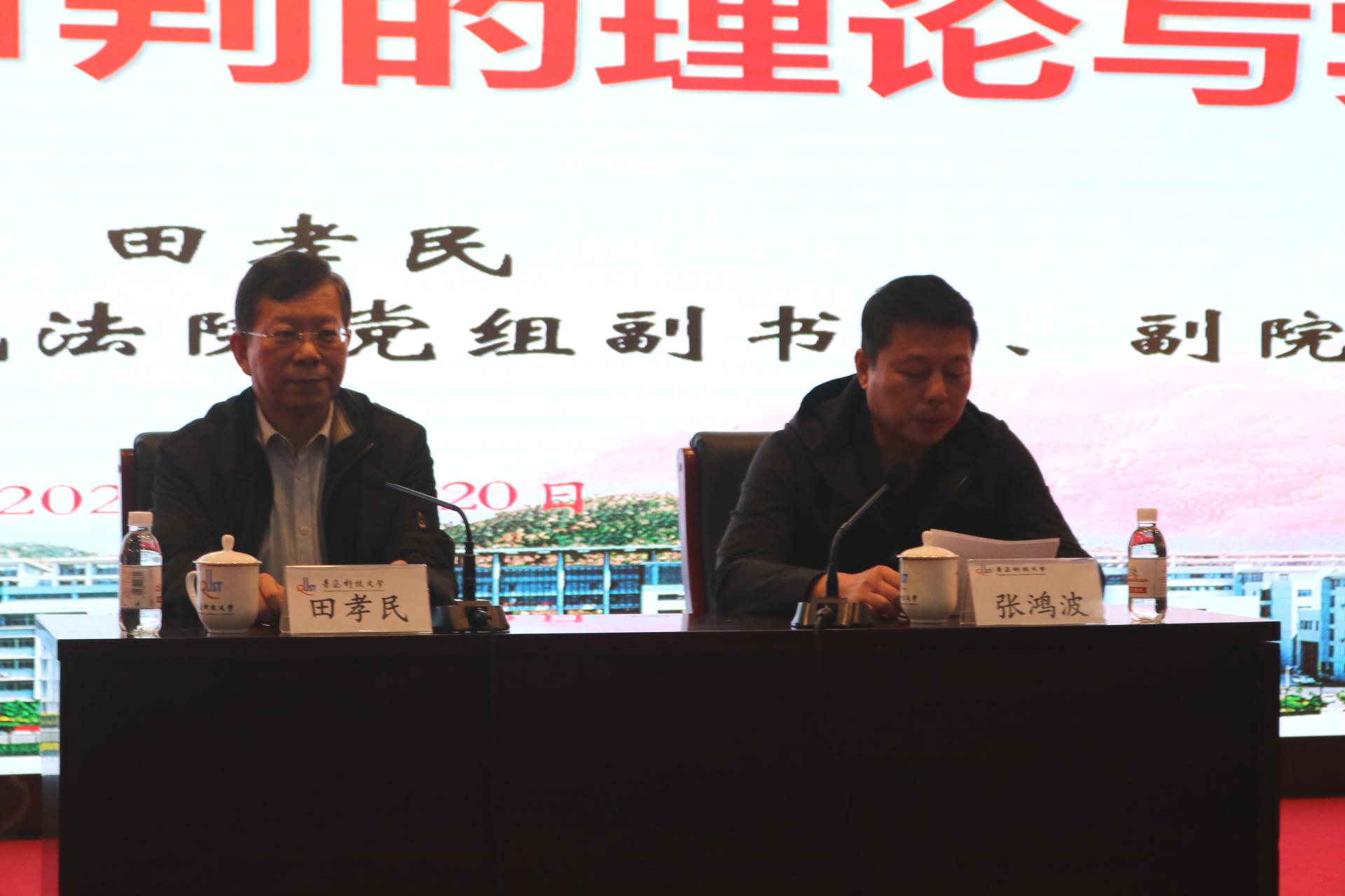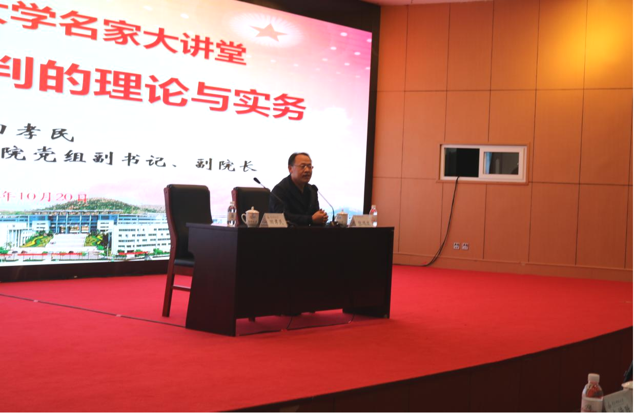 10月20日下午,市中级人民法院党组副书记、副院长、二级高级法官田孝民先生做客青岛科技大学名家大讲堂,于崂山校区英科报告厅作题为“刑事审判的理论与实务”的报告会。校党委副书记张鸿波出席并主持报告会,校法务办负责人、法学院党政领导、师生共计300余人聆听了报告会。
