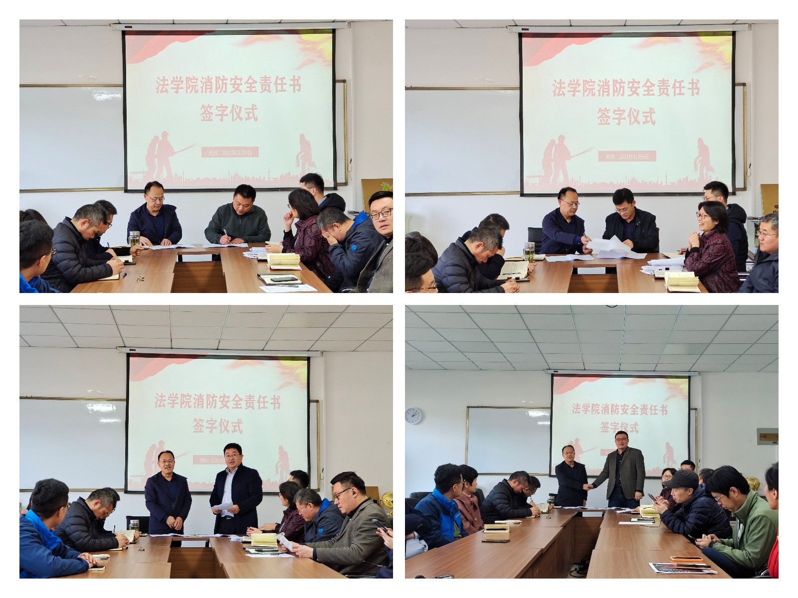 随后,法学院院长王金堂代表学院与各系、各办公室三级消防安全责任人签署了《法学院消防安全责任书》。