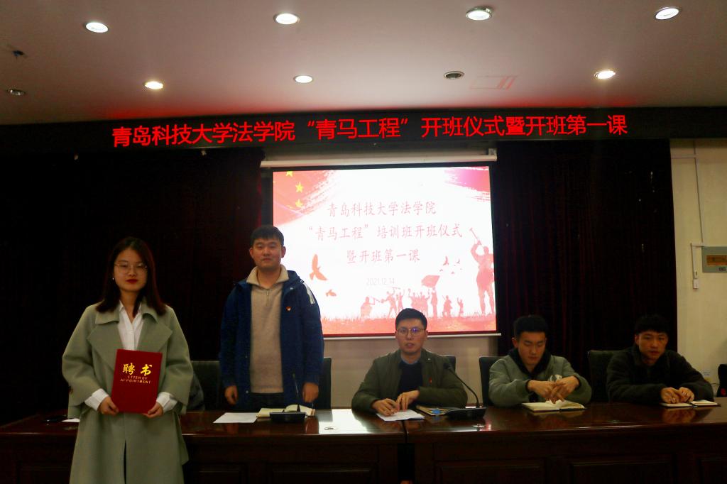 为深入贯彻习近平总书记关于青年工作的重要思想,积极落实团中央培养青年政治骨干人才的有关要求,12月14日下午,法学院于弘毅楼A201模拟法庭举办“青马工程”培训班开班仪式暨开班第一课活动。法学院学工办主任兼团委书记付继航、全体专兼职辅导员、法学院“青马工程”培训班学员及宣讲团成员参加本次活动。活动由辅导员李怡然主持。