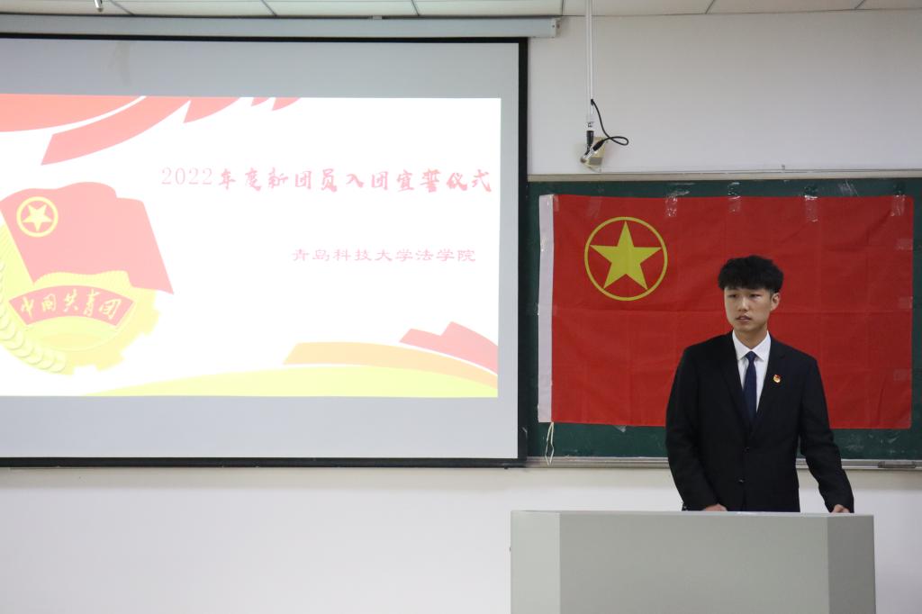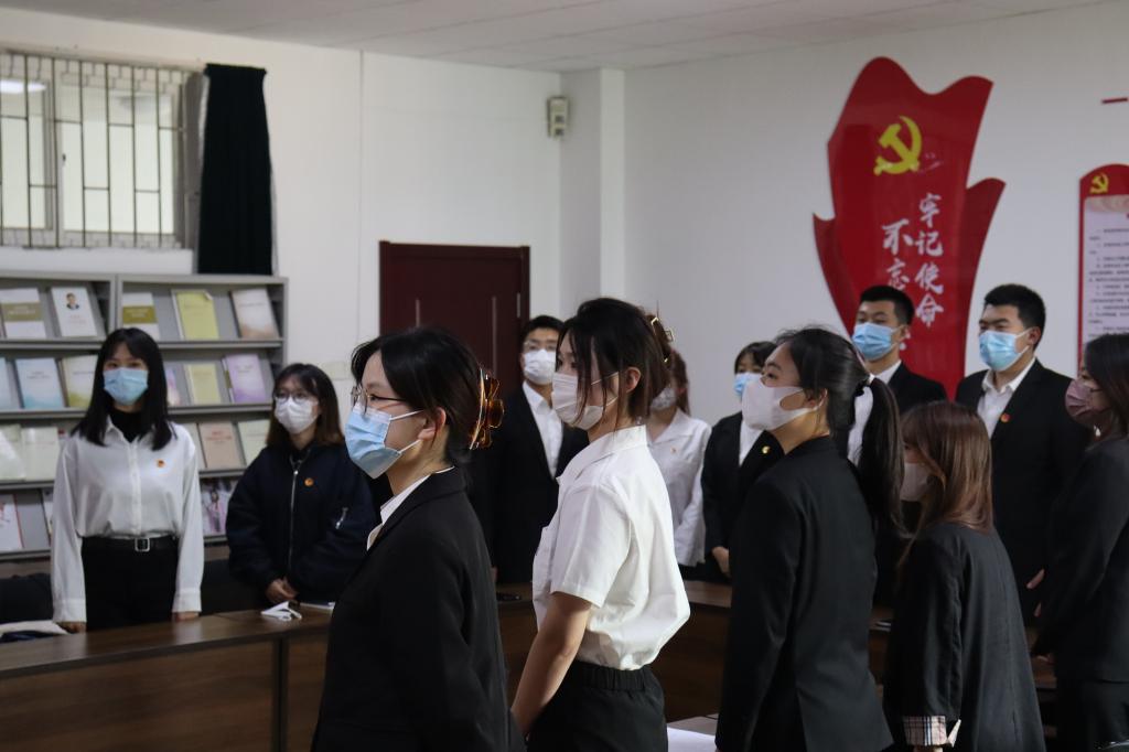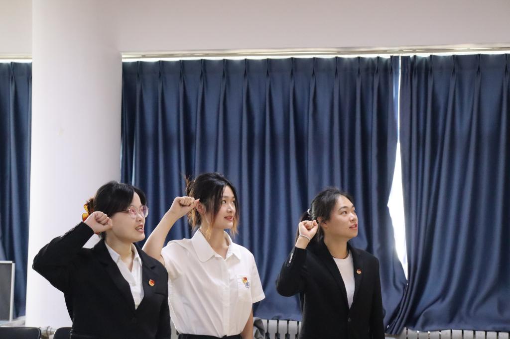 2022年5月15日下午,法学院在弘毅楼C406党员活动室隆重举行“青春跟党走,建功新时代”2022年度新发展团员入团宣誓仪式。本次仪式由兼职辅导员李岳林老师主持,新发展团员以及团员代表参加。