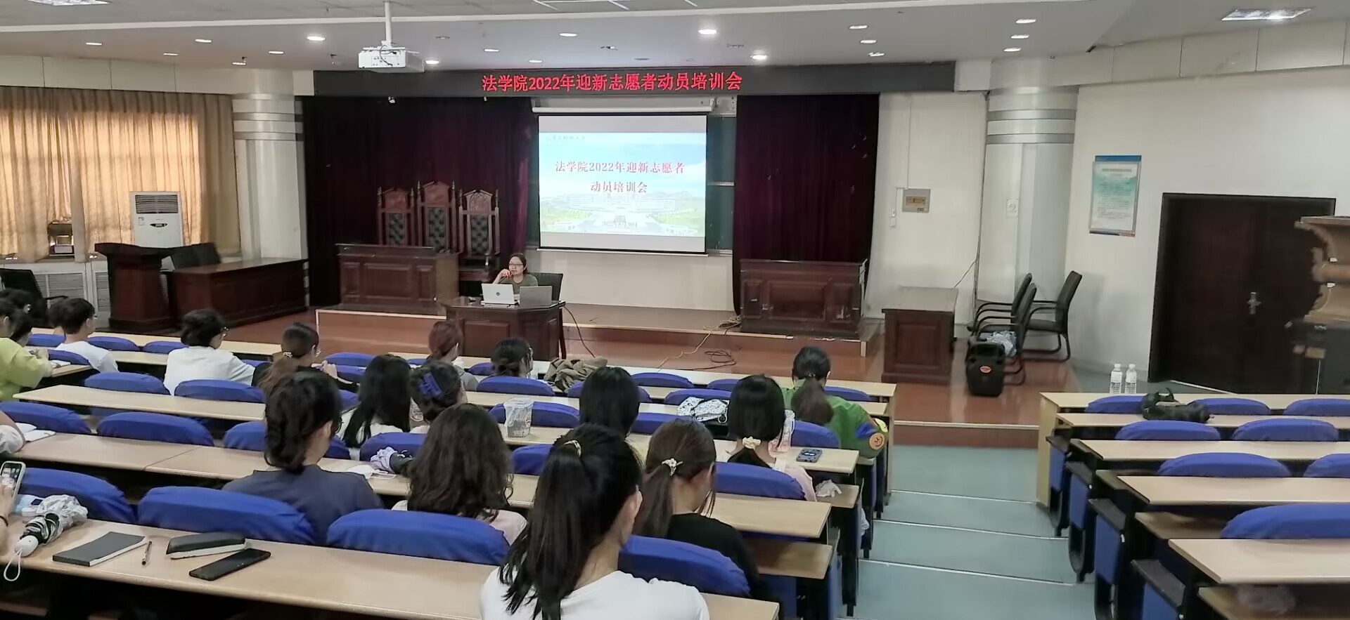 为落实学校关于疫情防控工作的有关部署,保障2022级新生顺利入校,为新生提供细致、周到服务,8月30日下午,法学院于弘毅楼A201召开2022年迎新志愿者动员培训会,学院110余名迎新志愿者参加了会议,培训会由法学院团委老师李怡然主持。