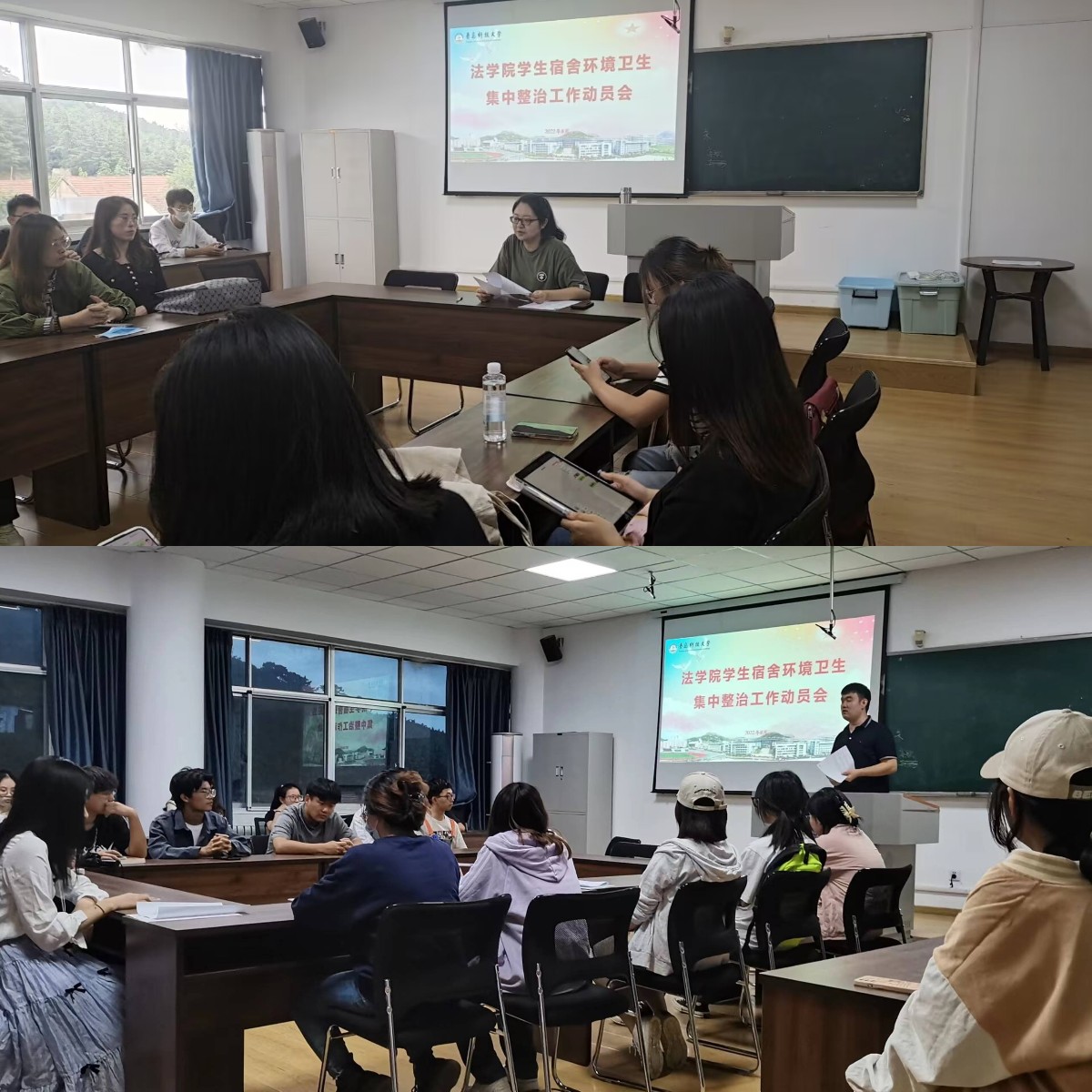 为进一步加强学生宿舍卫生管理,督促学生养成良好的卫生习惯,努力营造干净、整洁、有序的宿舍卫生环境,8月29日,法学院分年级召开学生宿舍环境卫生集中整治工作动员会,学生干部、舍长参会。