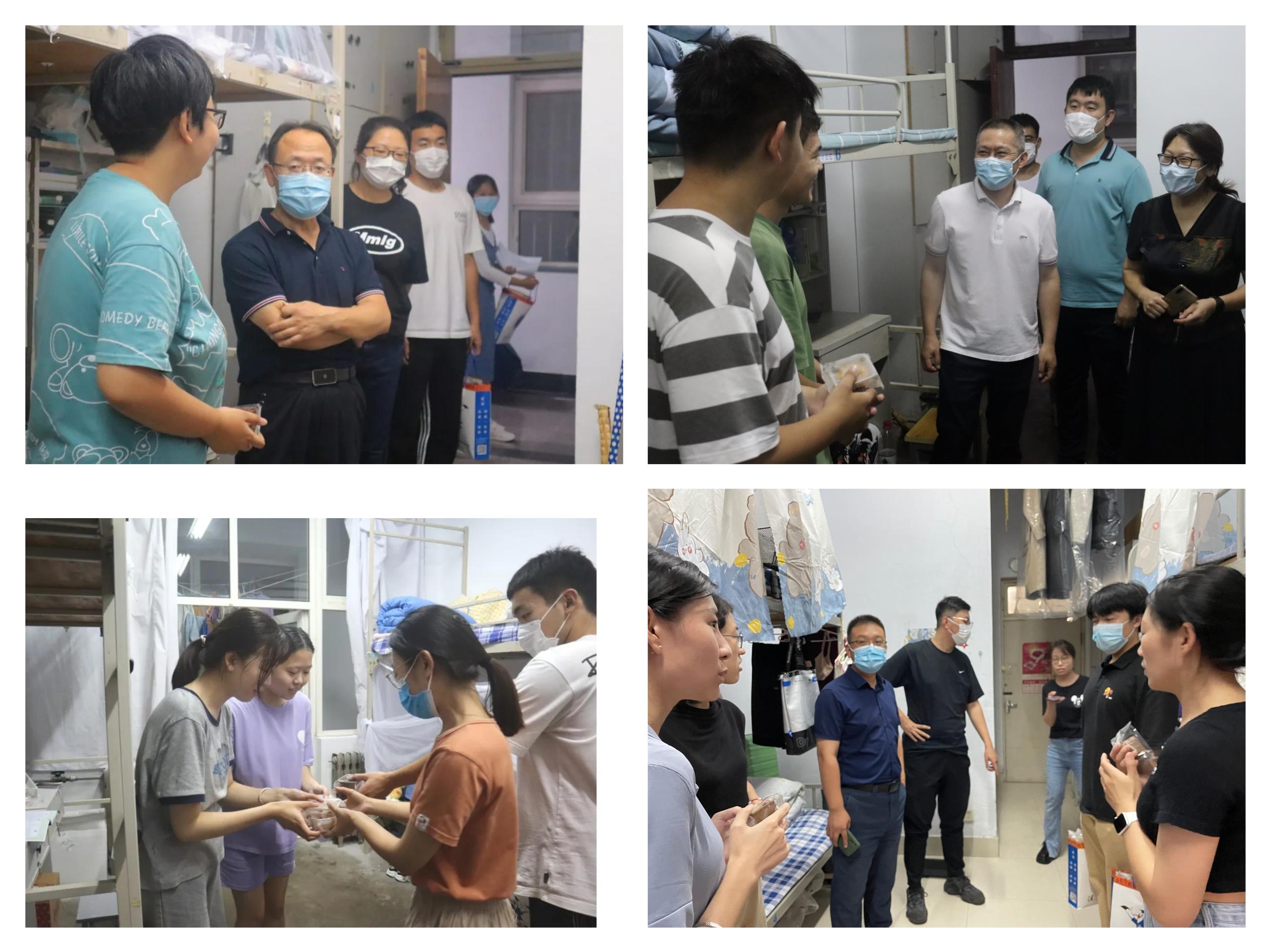 中秋慰问暖人心。在中秋佳节来临之际,为切实了解学生需求,关心学生生活,9月8日晚,法学院院长王金堂、党总支书记李卉、副院长李鑫、陈为智以及学院学生工作办公室全体辅导员走访慰问学院2022级新同学,并为大家送上了青科大特色定制月饼及节日问候。