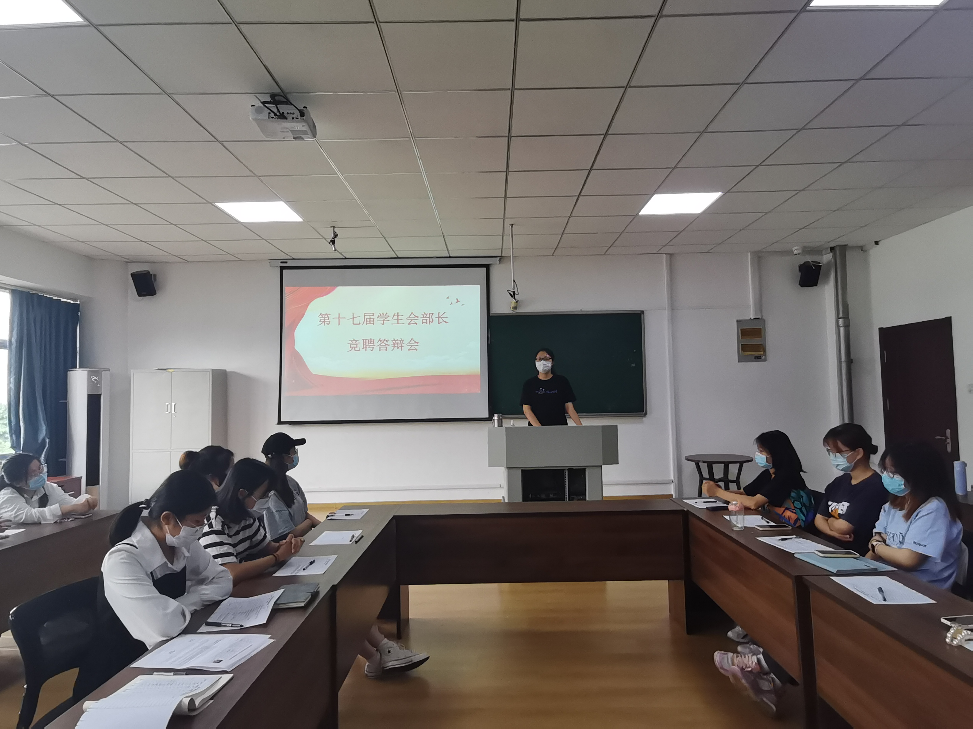 为进一步加强学院学生干部队伍建设,提高法学院学生会自我服务、自我教育、自我管理、自我监督的能力,更好地为同学们服务,9月13日下午,法学院学生会于弘毅楼C406举行了第十七届学生会部长竞聘答辩会。法学院团委书记付继航,法学院学生会秘书长、指导教师李怡然,辅导员王宇、王梦珂及第十六届学生会主席团和部长团出席了本次答辩会。