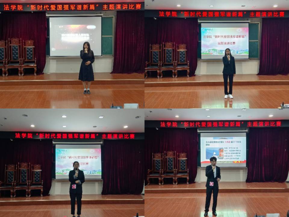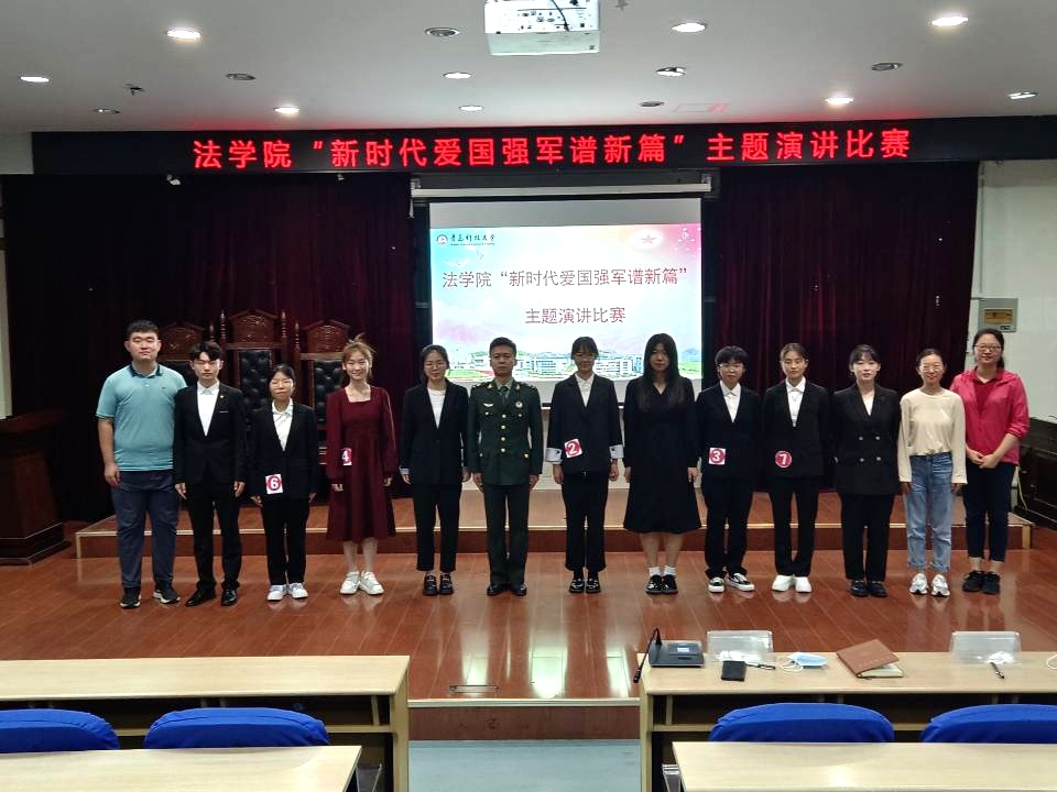 拳拳爱国意,浓浓赤子心。为激发大学生关心国防、热爱国防、建设国防、保卫国防的热情,引导青年学生厚植家国情怀,9月30日晚,法学院于弘毅楼A201举办“新时代爱国强军谱新篇”爱我国防主题演讲比赛。法学院辅导员李怡然、王宇、王梦珂出席活动。