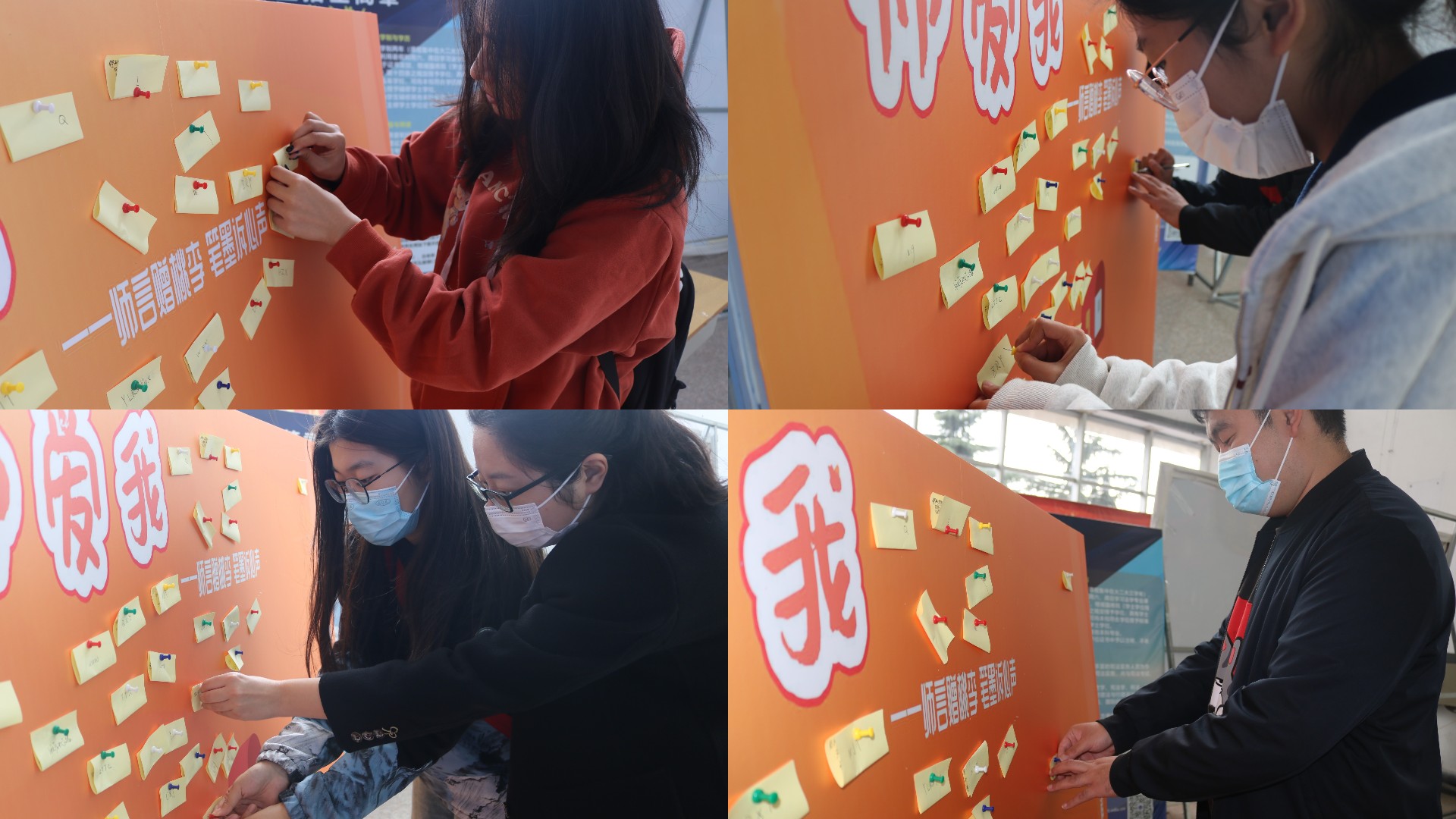 师者,所以传道授业解惑也。为帮助学生解答学习、生活、工作、交友等方面的疑问、困惑,10月24日-10月25日,法学院精心设计了“师言赠桃李,笔墨诉心声”活动。学生在展板上贴上自己的困惑,老师们给予解答或者建议,为其解惑。通过创新的活动形式,打通了老师和学生间的沟通渠道,让学生真切感受到了老师们的关心和爱护。