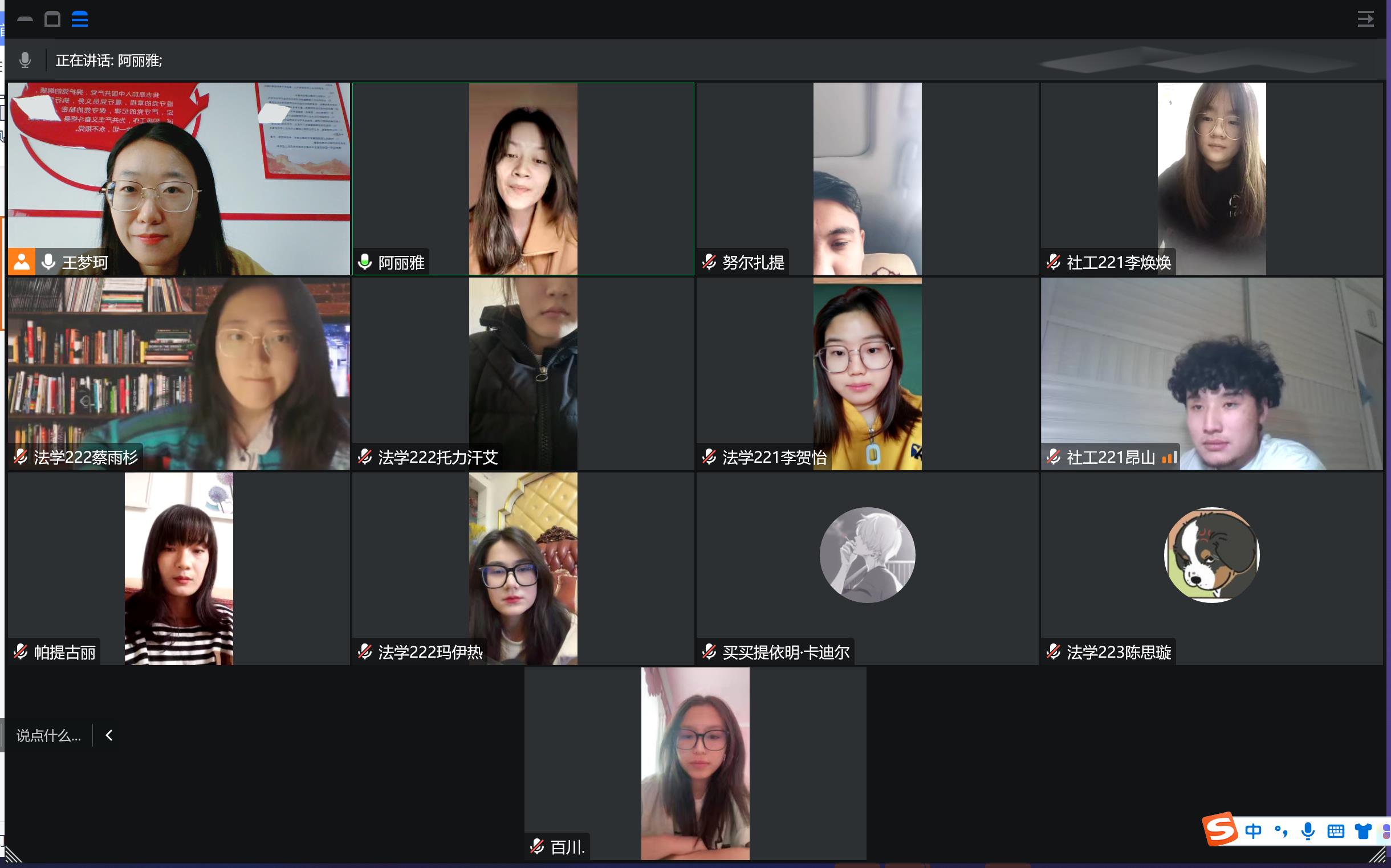 为进一步了解未返校学生学习和生活情况,进一步做好少数民族学生教育管理服务工作,关心我院少数民族学生的学习、生活,帮助少数民族学生成长成才,10月2日下午,法学院召开“同心共结石榴籽,青春献礼二十大”少数民族学生线上主题座谈会,2022级辅导员王梦珂与15位同学未返校同学进行线上面对面深度交流,其中包括9名新疆籍少数民族学生,4名新疆籍汉族学生,2名省外汉族学生。