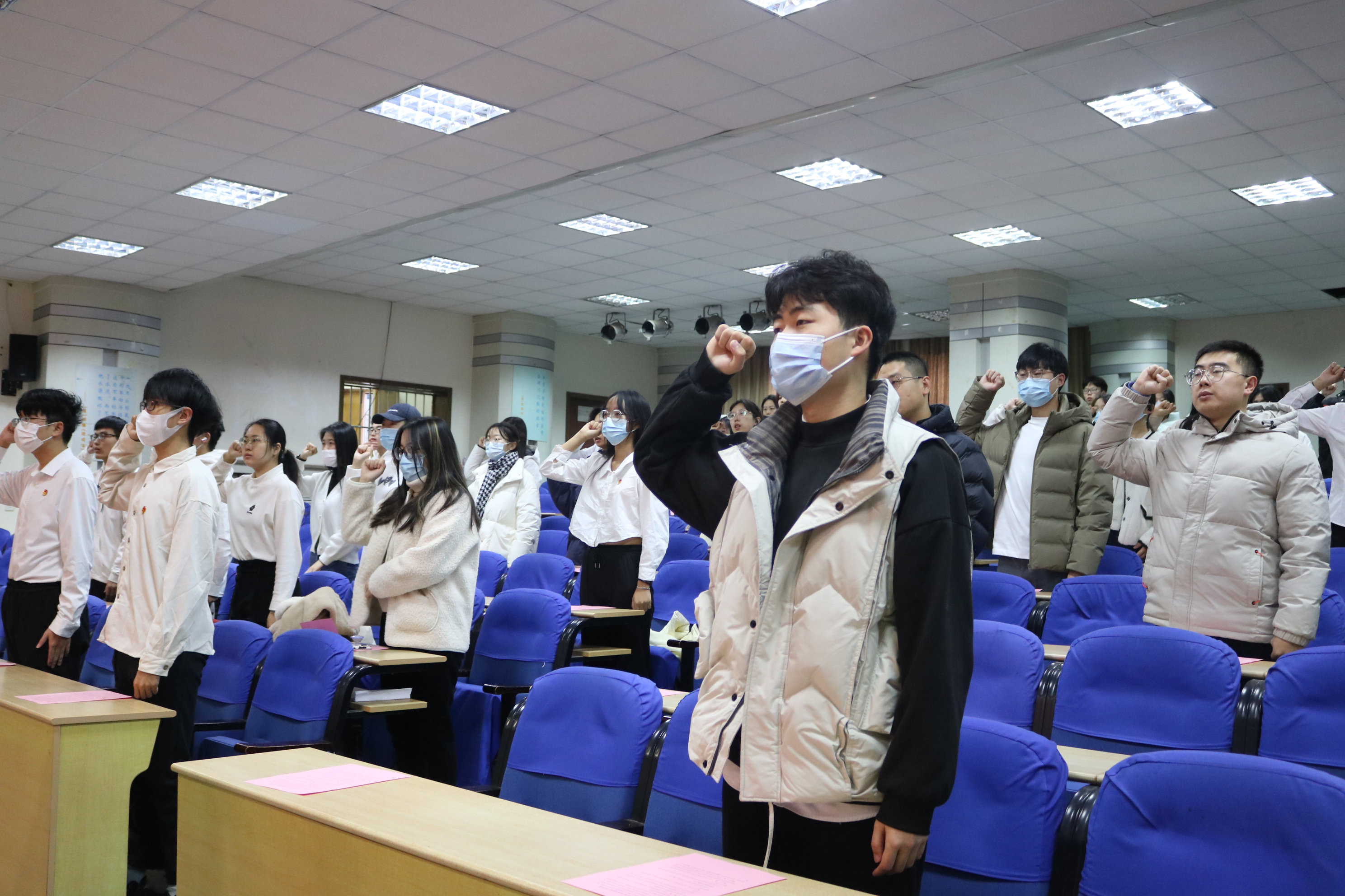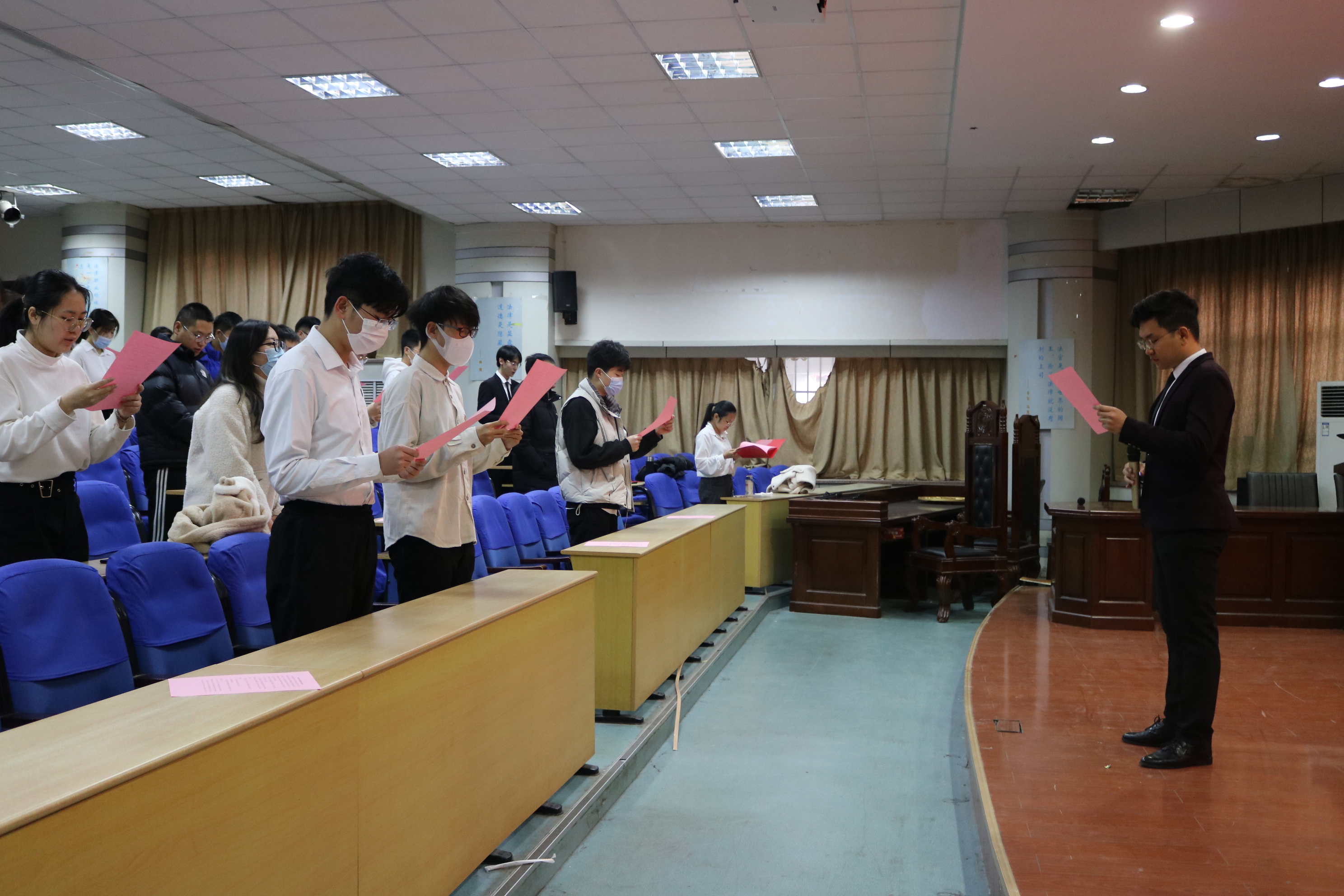 12月4日上午,法学院学生代表于弘毅楼A201开展“宪法晨读”活动。在领读人高梓彬的带领下,学生代表们一起诵读宪法部分条款,学习宪法知识,感受宪法的威严和神圣。