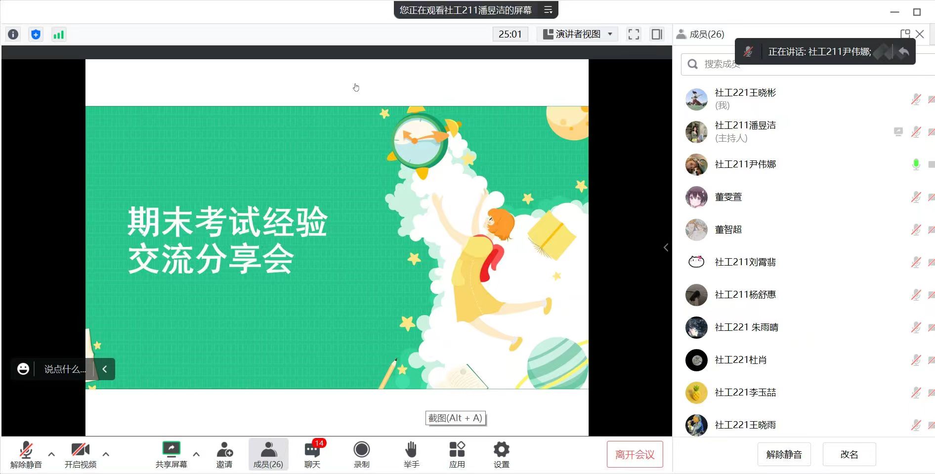 为帮助大一学生梳理知识脉络,理清复习重难点,提高复习效率,以最佳状态迎接大学期间第一次期末考试的到来,法学院团委、学院学生会近期线上组织召开了期末考试经验分享交流会,会上邀请了法学和社会工作专业大二年级优秀学生代表分享了各自的考试复习经验和方法。
