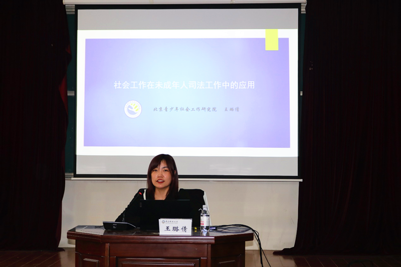 3月29日下午,北京超越青少年社工事务所副主任王璐倩受邀在模拟法庭为法学院师生讲授了主题为“社会工作在未成年人司法工作中的应用”的学术报告。讲座由法学院王琪老师主持,法学院师生聆听了此次讲座。