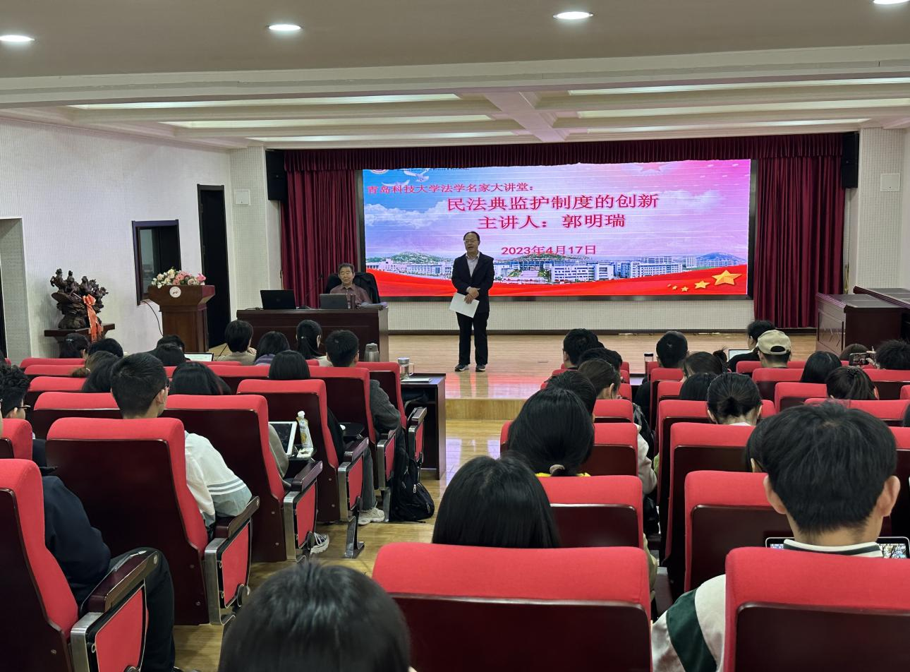 4月17日,著名民法学家、法学教育家、山东大学荣聘教授、博士生导师郭明瑞应邀做客法学院“名家大讲堂”,为法学院师生做了题为“民法典监护制度的创新”的学术讲座。本次讲座由法学院院长王金堂主持,全院100余名师生参加。