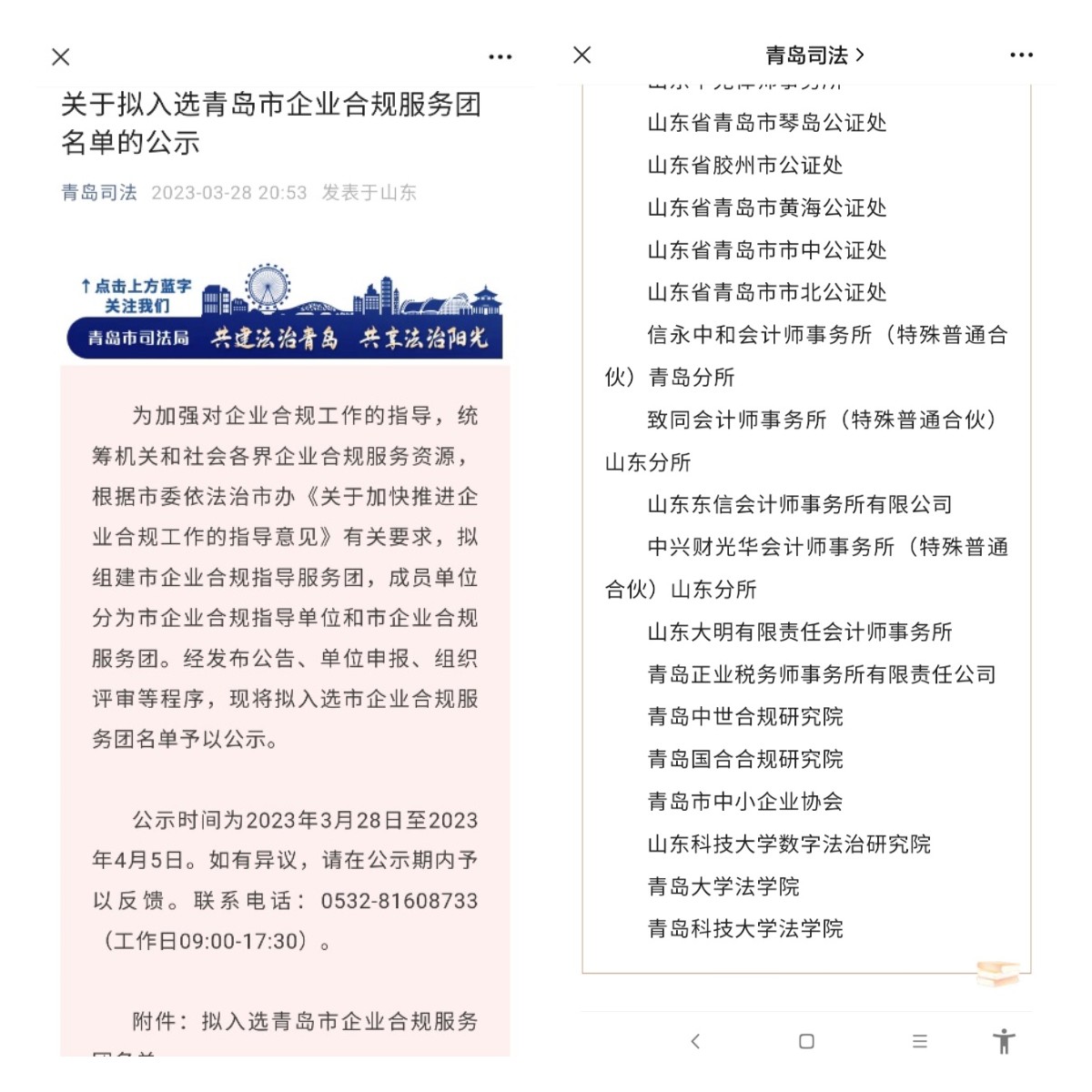 为落实学校“校地融合、校企链合、平台聚合、资源整合、服务集合”五大行动要求,法学院组织专业力量,依托院级企业合规研究中心,在青岛市司法局的统筹协调下为企业提供定制合规服务产品,为企业开展合规培训、宣传解读合规相关政策、提供推进企业合规体系建设的其他服务等。2023年4月6日,经过青岛市司法局的严格遴选,青岛科技大学法学院企业合规研究中心顺利入选青岛市企业合规服务团。根据计划和企业的具体需求,法学院企业合规服务团队将陆续为社会各界提供高质量的企业合规法律服务,并期待通过该渠道探索打造校地融合发展的新模式。