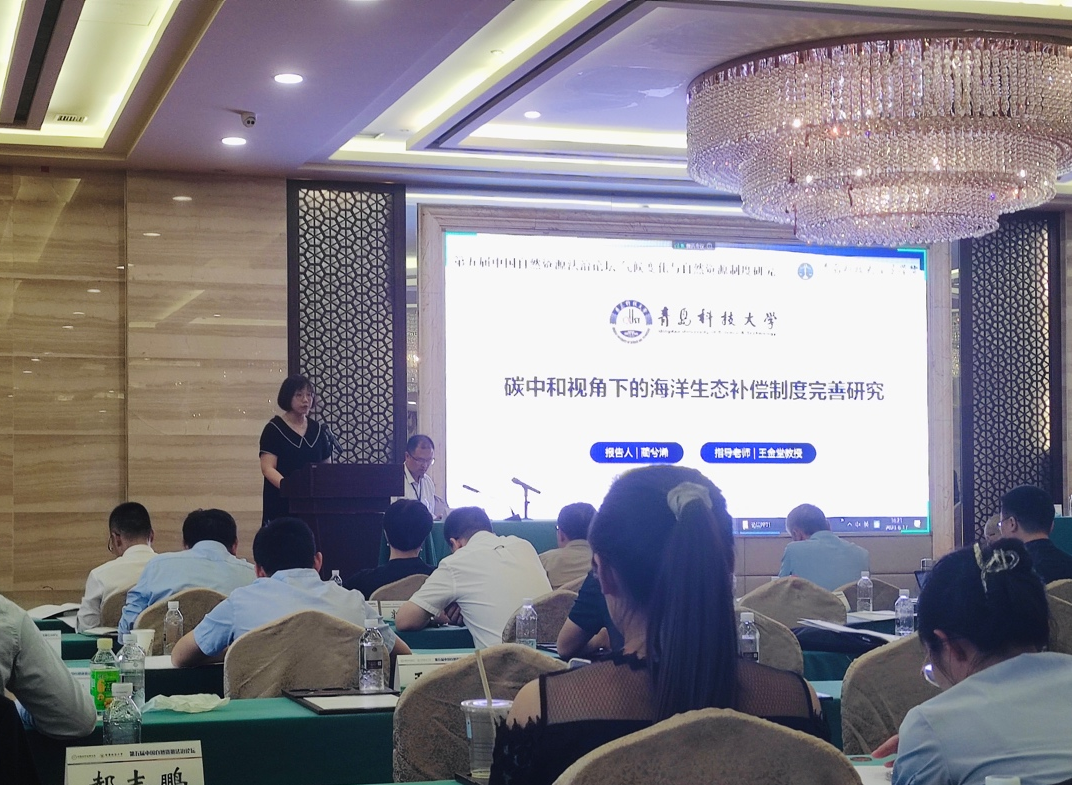 会议交流环节分为自然资源法治研究、自然资源保护救济路径研究、气候变化与自然资源制度研究、及生态环境法治研究四个单元。法学院在读研究生蔺兮浠在第三单元中进行了题目为《碳中和视角下的海洋生态补偿制度完善研究》的主题发言,中国自然资源学会资源法学专委会常务委员,内蒙古财经大学法学院院长、教授落志筠和《环境保护》编辑部主任罗敏对本单元发言进行了点评。