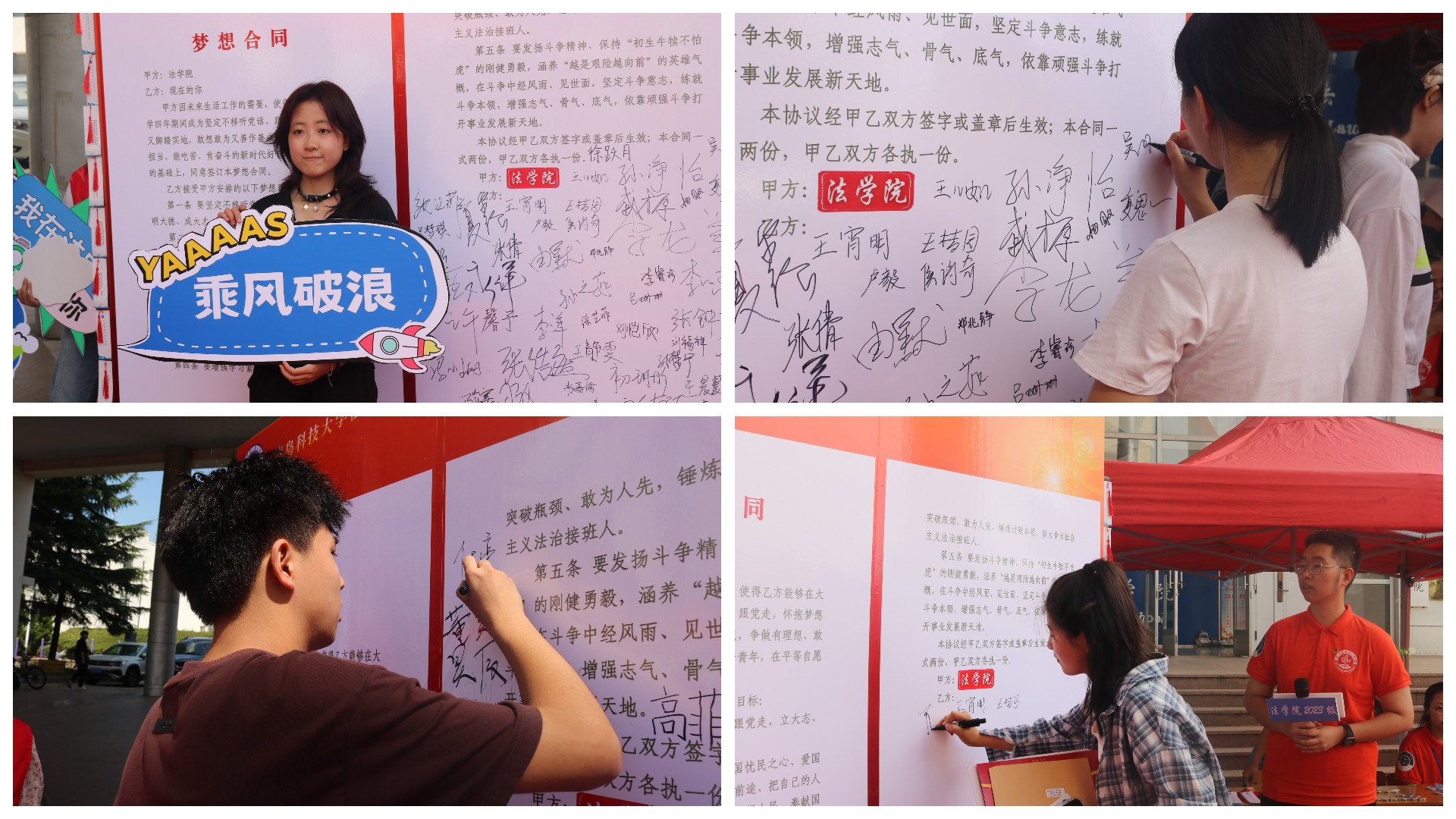 “甲方因未来工作生活需要,使得乙方能够在大学四年期间成为坚定不移听党话、跟党走,怀抱梦想又脚踏实地……”9月2日,青岛科技大学法学院迎新报到处的一份梦想合同书引来了前来报到的新生和家长们的关注。